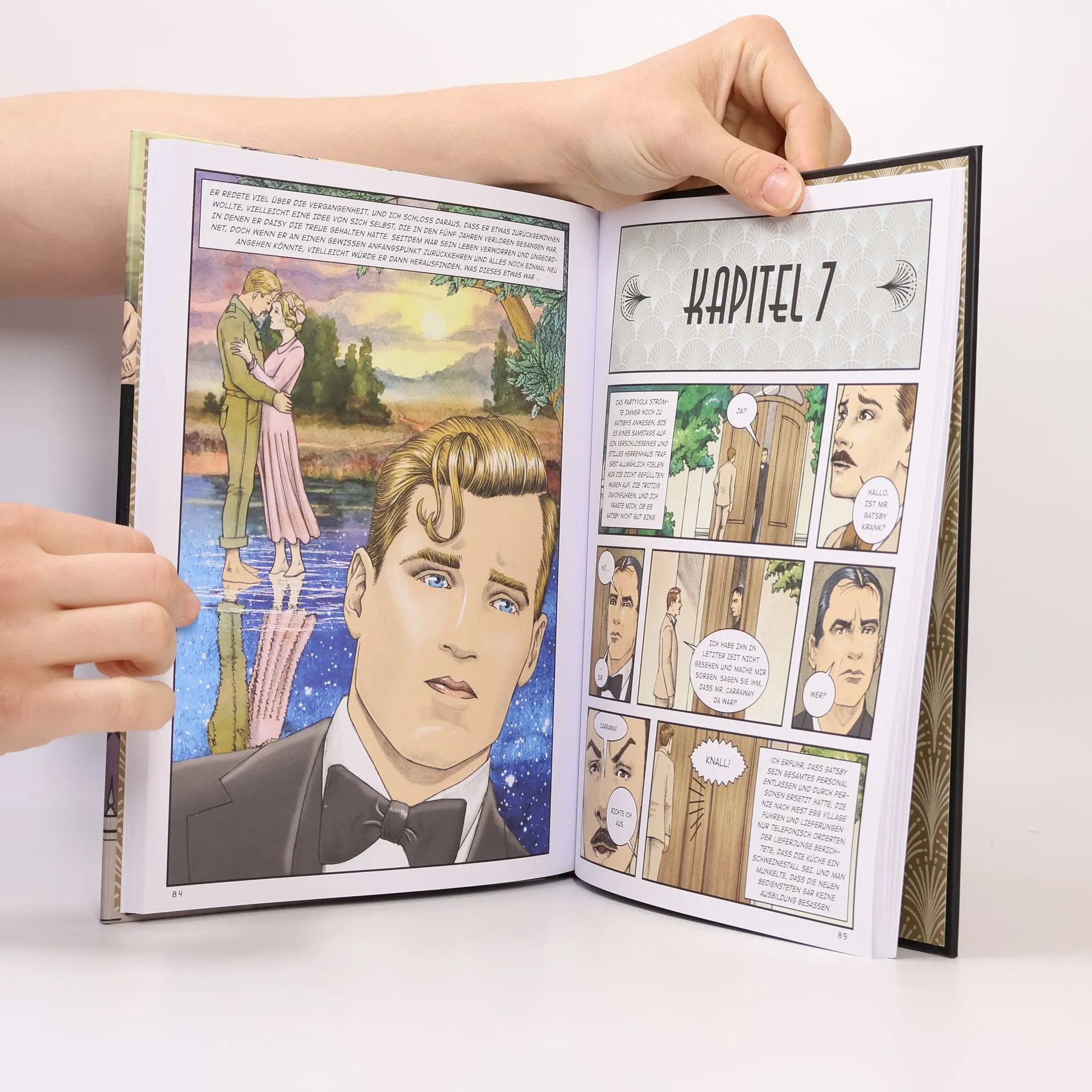 F. Scott Fitzgeralds Klassiker wird als fesselnde Graphic Novel neu interpretiert. Die Geschichte spielt in den 1920er Jahren und folgt dem Millionär Jay Gatsby, der extravagante Partys veranstaltet und nach der unerreichbaren Daisy Buchanan strebt. Die Art-Deco-Illustrationen von Pete Katz erwecken die glamouröse Welt der New Yorker High Society zum Leben.