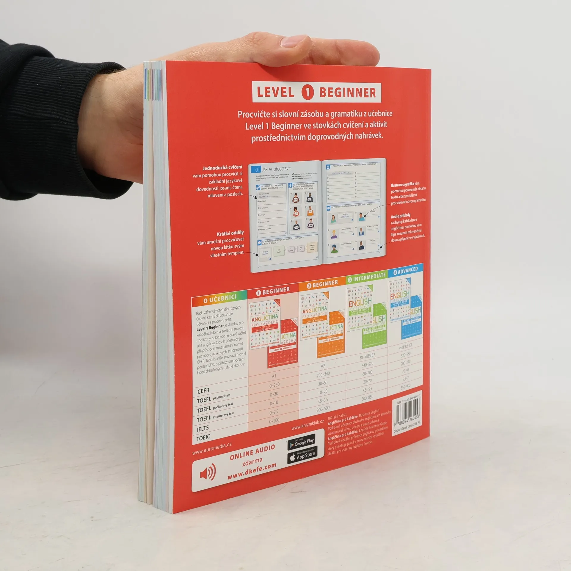 Jste začátečník a potřebujete se rychle a kvalitně naučit anglicky?V angličtině pro každého: Úroveň 1: Začátečník, cvičebnice najdete více než 700 cvičení. Kniha využívá skvělou grafiku a hravost pro rozvíjení znalostí angličtiny v oblasti mluvení, výslovnosti, čtení, psaní, slovní zásoby a gramatiky. Budete hledat chyby v ukázkových textových zprávách, vyplňovat prázdná pole, hrát zábavné hry, určovat pořadí slov a zodpovídat poslechové otázky. Angličtina pro každého: Úroveň 1: Začátečník, pracovní kniha, zahrnuje dovednosti a témata potřebná také pro mezinárodní zkoušky z angličtiny.