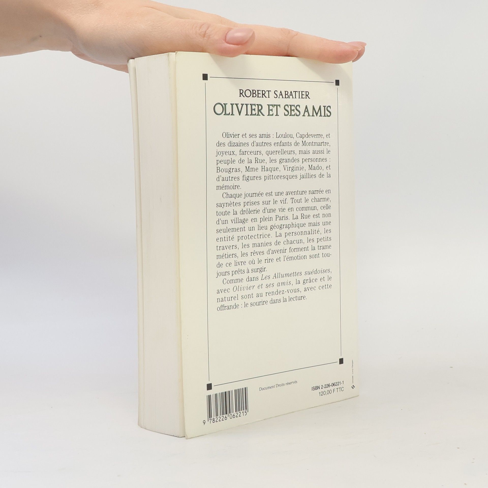 Olivier et ses amis : Loulou, Capdeverre, et des dizaines d'autres enfants de Montmartre, joyeux, farceurs, querelleurs, mais aussi le peuple de la Rue, les grandes personnes : Bougras, Mme Haque, Virginie, Mado, et d'autres figures pittoresques jaillies de la mémoire.Chaque journée est une aventure narrée en saynètes prises sur le vif. Tout le charme, toute la drôlerie d'une vie en commun, celle d'un village en plein Paris. La Rue est non seulement un lieu géographique mais une entité protectrice. La personnalité, les travers, les manies de chacun, les petits métiers, les rêves d'avenir forment la trame de ce livre où le rire et l'émotion sont toujours prêts à surgir.Comme dans Les Allumettes suédoises, avec Olivier et ses amis, la grâce et le naturel sont au rendez-vous, avec cette offrande : le sourire dans la lecture.