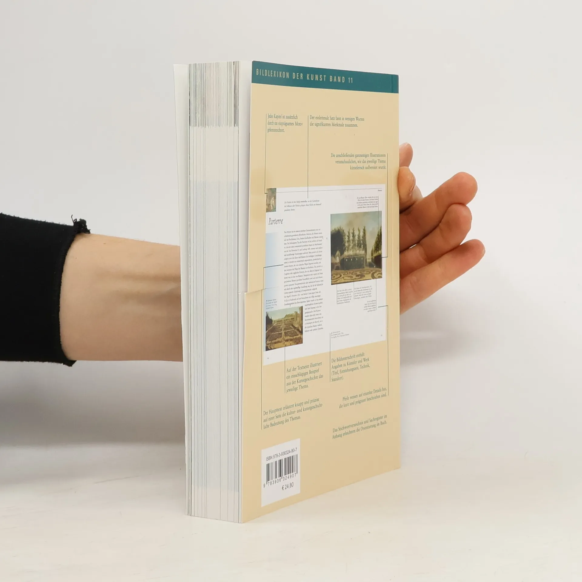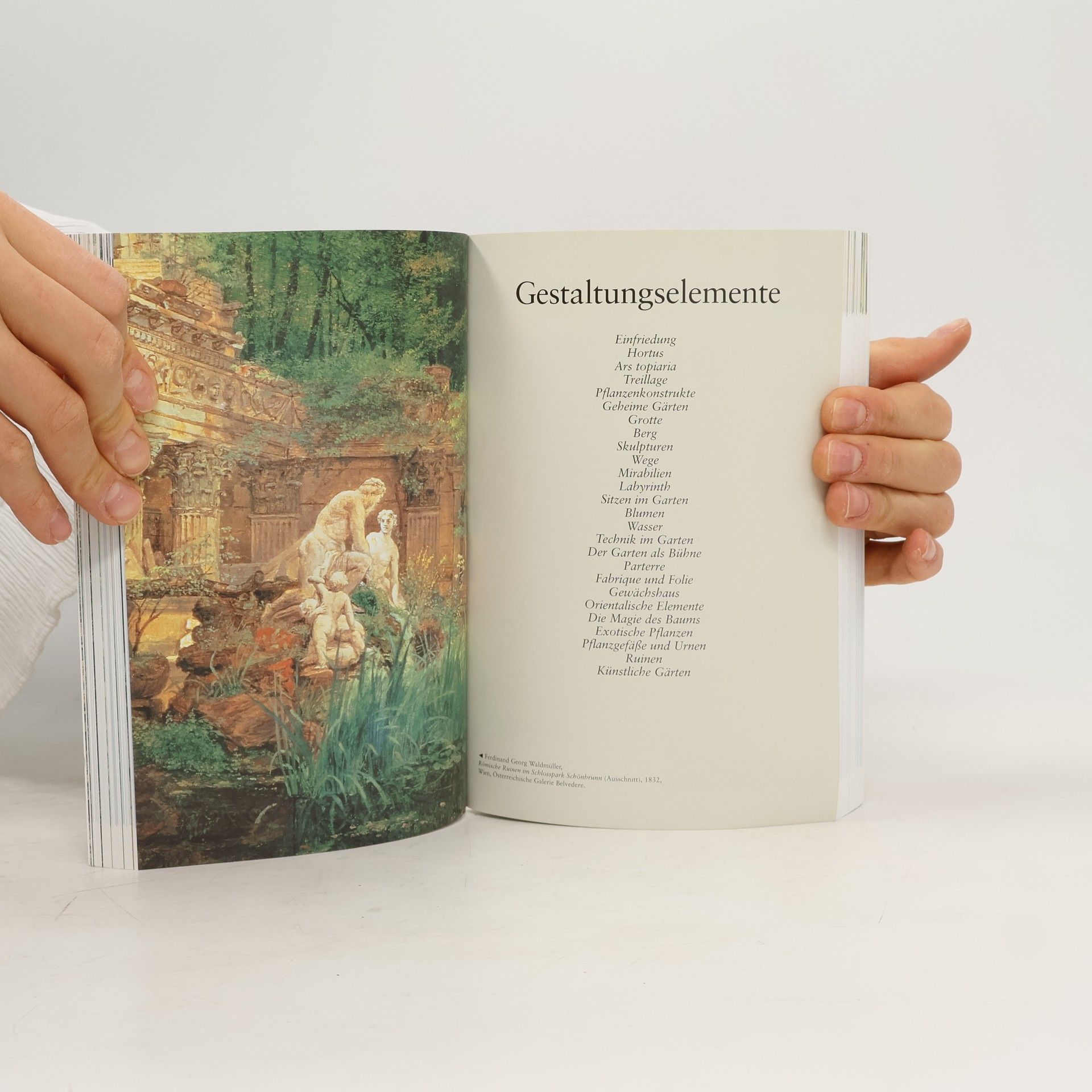 Das Buch befasst sich mit der Darstellung von Gärten und Parkanlagen angefangen bei den Ägyptern bis hin zu Andy Warhol. Es führt durch die Gartenmalerei verschiedener Perioden und Kulturen und zeigt den Garten als multifunktionelles Ensemble, das Ernährungs-, Erholungs- sowie Repräsentationszwecken dient. Die Autorin behandelt u. a. die Differenzierung von sakralen und weltlichen Gartenkonzepten, die Renaissance am Beispiel der Gärten der Medici sowie die Darstellung von Königsgärten (z. B. Schönbrunn).§Er zeigt die Entwicklung des Gartens zum öffentlichen Raum, stellt Statuen, Vasen, Labyrinthe, Alleen, Blumen und Bäume als Elemente von Garten- und Parkarealen vor. Des Weiteren widmet er sich Motiven, die eng mit der Gartendarstellung verknüpft sind, wie Sport, Feste, Spaziergänge und die Liebe. Abschließend folgt ein Kapitel über Symbolgärten, wie der Garten Eden oder der eingefriedete Garten der Jungrau Maria (hortus conclusus).