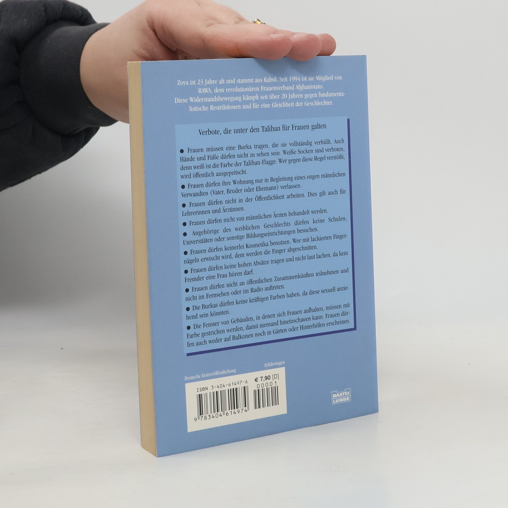 Zoya ist 23 Jahre alt und stammt aus Kabul. Seit 1994 ist sie Mitglied von RAWA, dem revolutionären Frauenverband Afghanistans. Diese Widerstandsbewegung kämpft seit über 20 Jahren gegen fundamentalistische Restriktionen und für eine Gleichheit der Geschlechter, vor allem für Bildung und Gesundheitsversorgung für Frauen. Die sanften Rebellinnen operierten während der Taliban-Herrschaft unter unglaublichen Gefahren von Pakistan aus. Sie schleusen Ärzteteams und Krankenschwestern nach Afghanistan ein und bringen Mädchen und Frauen heimlich Lesen und Schreiben bei. In der pakistanischen Grenzstadt Ouetta haben sie ein Flüchtlingslager mit Krankenhaus und Schule organisiert. Die beiden Journalisten John Follain und Rita Cristofari trafen Zoya in Rom, wo sie Vorträge hielt und Spendengelder für RAWA sammelte. Dort begann Zoya, ihre Lebensgeschichte zu erzählen und von ihrem gefahrvollen Alltag in Afghanistan zu berichten, wo Frauen weniger gelten als Tiere und öffentliche Hinrichtungen in Fußballstadien an der Tagesordnung sind.