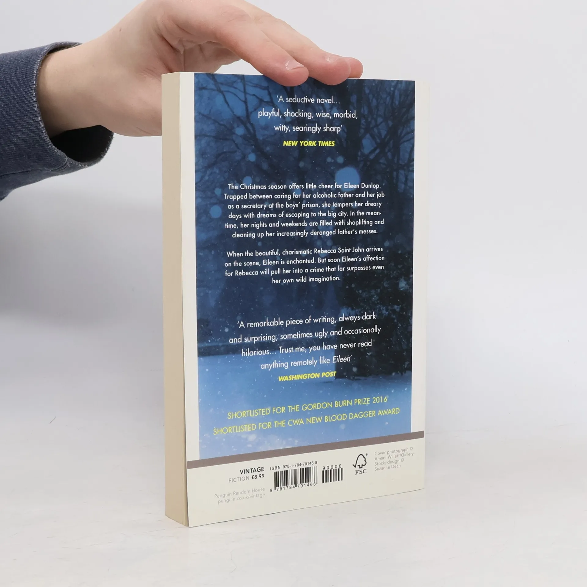 SHORTLISTED FOR THE MAN BOOKER PRIZE 2016 SHORTLISTED FOR THE GORDON BURN PRIZE 2016 SHORTLISTED FOR THE CWA NEW BLOOD DAGGER AWARD 2016 Selected as a Book of the Year 2016 in The Times, Observer and Daily Telegraph Fully lives up to the hype. A taut psychological thriller, rippled with comedy as black as a raven's wing, Eileen is effortlessly stylish and compelling. - Robert Douglas-Fairhurst, The Times The Christmas season offers little cheer for Eileen Dunlop. Trapped between caring for her alcoholic father and her job as a secretary at the boys' prison, she tempers her dreary days with dreams of escaping to the big city. In the meantime, her nights and weekends are filled with shoplifting and cleaning up her increasingly deranged father's messes. When the beautiful, charismatic Rebecca Saint John arrives on the scene as the new counsellor at the prison, Eileen is enchanted, unable to resist what appears to be a miraculously budding friendship. But soon, Eileen's affection for Rebecca will pull her into a crime that far surpasses even her own wild imagination.