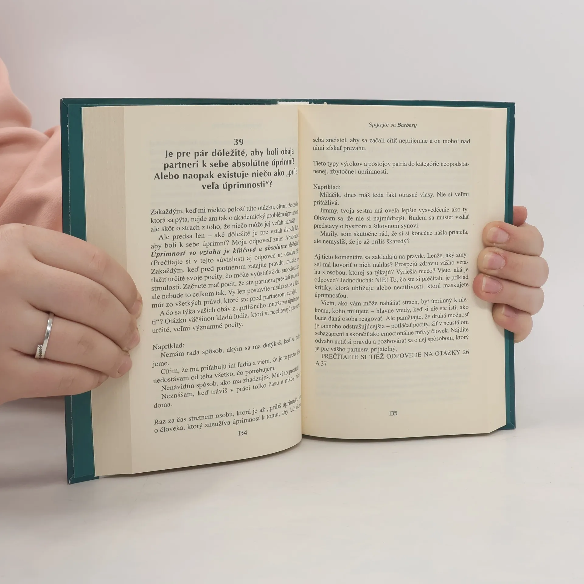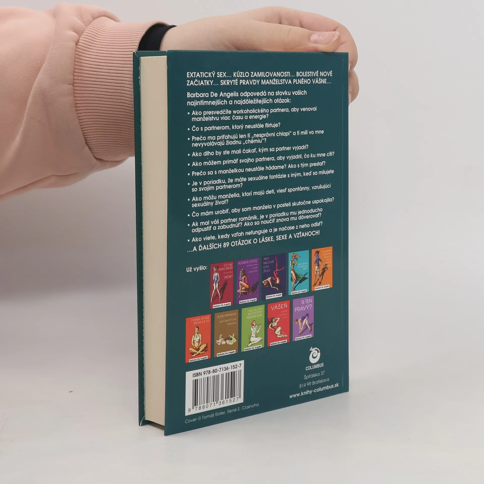 Barbara De Angelis odpovedá na stovku vašich najintímnejších a najdôležitejších otázok: • Ako presvedčíte workoholického partnera, aby venoval manželstvu viac času a energie? • Čo s partnerom, ktorý neustále flirtuje? • Prečo ma priťahujú len tí „nesprávni chlapi“ a tí milí vo mne nevyvolávajú žiadnu „chémiu“? • Ako dlho by ste mali čakať, kým sa partner vyjadrí? • Ako viete, kedy vzťah nefunguje a je načase z neho odísť?