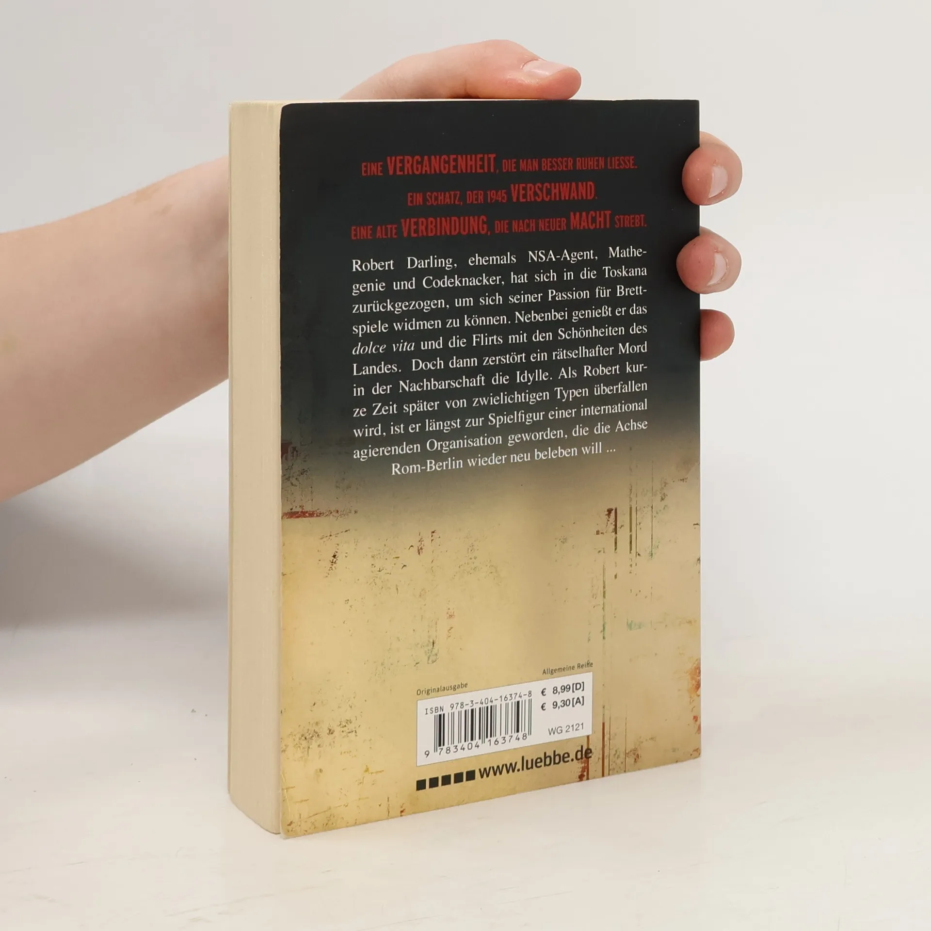 Robert Darling, ehemals NSA-Agent, Mathegenie und Codeknacker, hat sich in die Toskana zurückgezogen, um sich seiner Passion für Brettspiele widmen zu können. Nebenbei genießt er das dolce vita und die Flirts mit den Schönheiten des Landes. Doch dann zerstört ein rätselhafter Mord in der Nachbarschaft die Idylle. Als Robert kurze Zeit später von zwielichtigen Typen überfallen wird, ist er längst zur Spielfigur einer international agierenden Organisation geworden, die die Achse Rom-Berlin wieder neu beleben will ... --From publisher description.