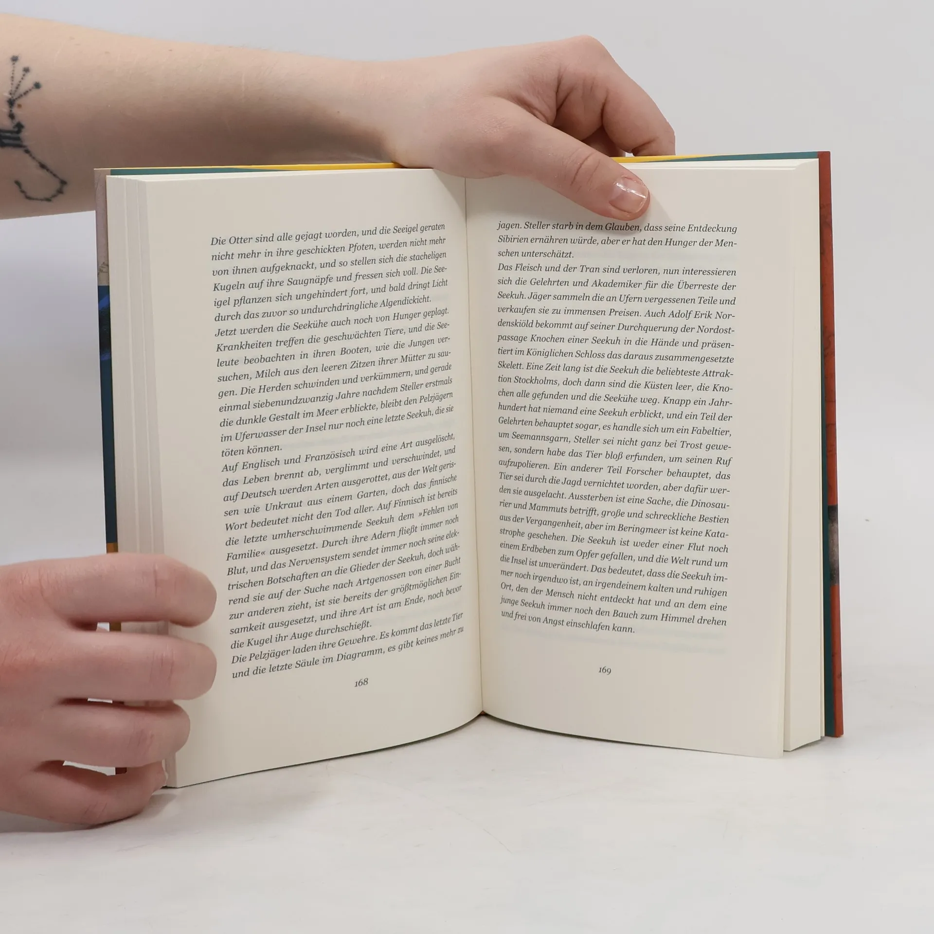 In »Das Wesen des Lebens« erzählt Iida Turpeinen von der ausgestorbenen Stellerschen Seekuh und den Menschen, die von ihr angezogen werden. Sie beleuchtet das Streben nach Wissen und die damit verbundene Zerstörung der Natur, während sie uns die Verbindungen zwischen Mensch und Umwelt näherbringt.