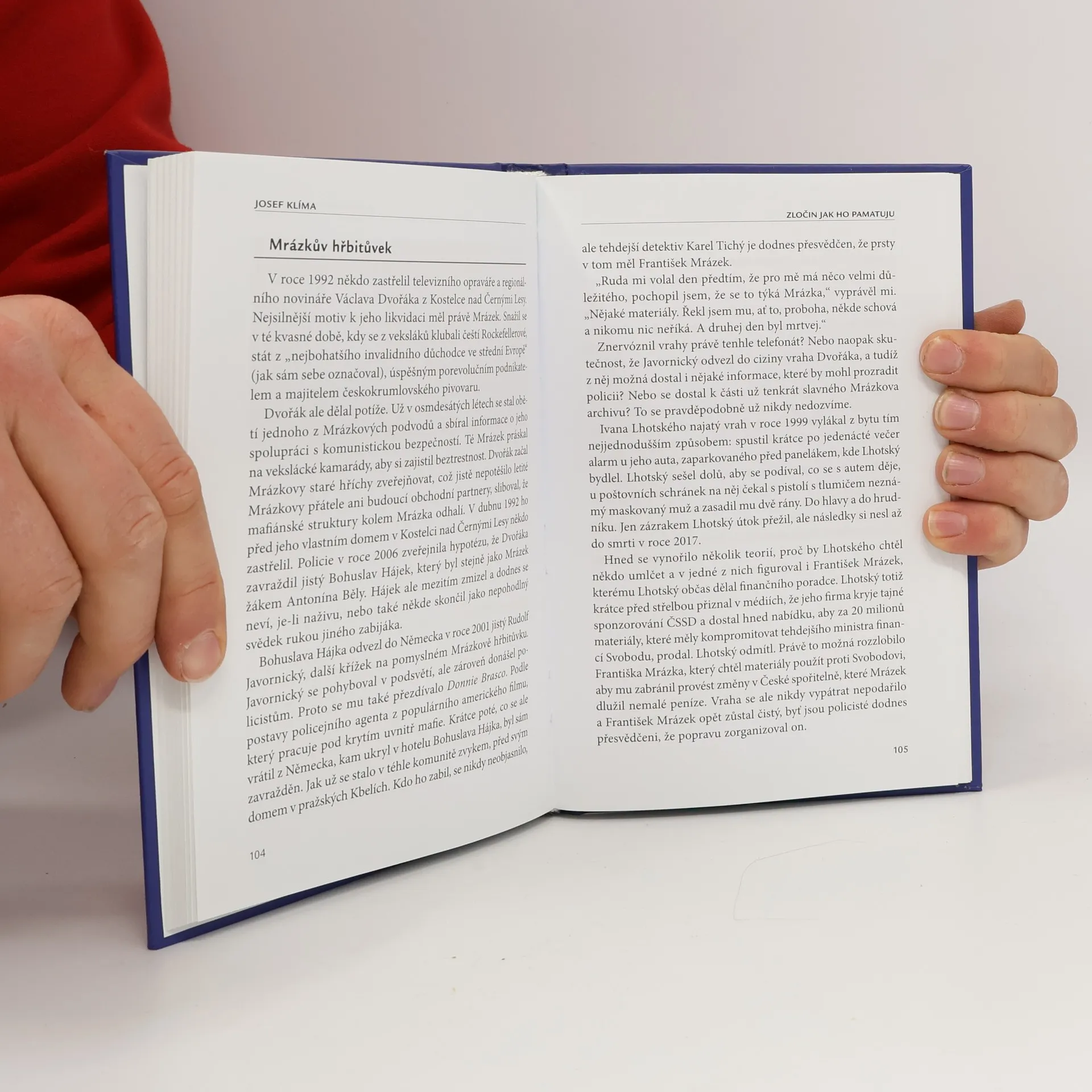 Známý investigativní reportér Josef Klíma přichází s novou knihou, kterou bychom s nadsázkou mohli nazvat Naše dějiny viděné přes zločin. Píše zde o důležitých postavách nedávné chmurné historie, o Ivanu Jonákovi a jeho Discolandu, technologovi orlických vražd Karlu Kopáčovi, o Radovanu Krejčířovi, Jiřím Kajínkovi, Františku Mrázkovi a dalších. Protože všechny zmíněné aktéry poznal Klíma osobně, dává to publikaci punc jedinečnosti. Nechtěl jsem psát jen bizarní pitaval, říká autor, zločin prošel fázemi od Divokého východu v 90. letech až po dnešní oligarchy. Do jaké míry to umožnili politici a nevymahatelnost práva ať už velkým hráčům typu Viktora Koženého nebo osamělým vrahům jako byl Ivan Roubal? Na to jsem se ptal lidí, kteří zastávali důležité posty v policii, justici, ve vězeňství, v tajných službách či advokacii.