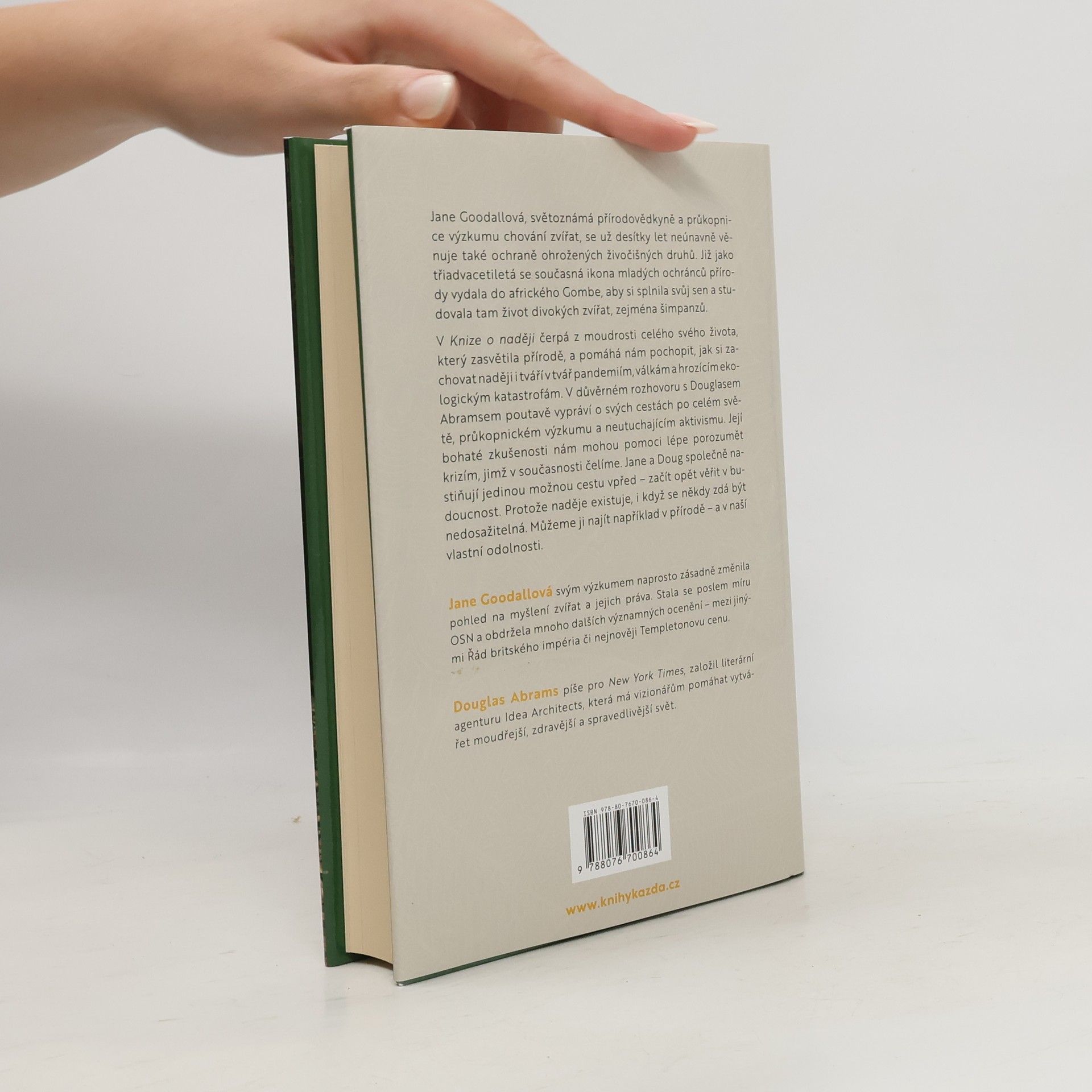 V Knize o naději čerpá Jane Goodallová z moudrosti celého svého života, který zasvětila přírodě, a pomáhá nám pochopit, jak si zachovat naději i tváří v tvář pandemiím, válkám a hrozícím ekologickým katastrofám. V důvěrném rozhovoru s Douglasem Abramsem poutavě vypráví o svých cestách po celém světě, průkopnickém výzkumu a neutuchajícím aktivismu. Její bohaté zkušenosti nám mohou pomoci lépe porozumět krizím, jimž v současnosti čelíme. Jane a Doug společně nastiňují jedinou možnou cestu vpřed - začít opět věřit v budoucnost. Protože naděje existuje, i když se někdy zdá být nedosažitelná. Můžeme ji najít například v přírodě - a v naší vlastní odolnosti.