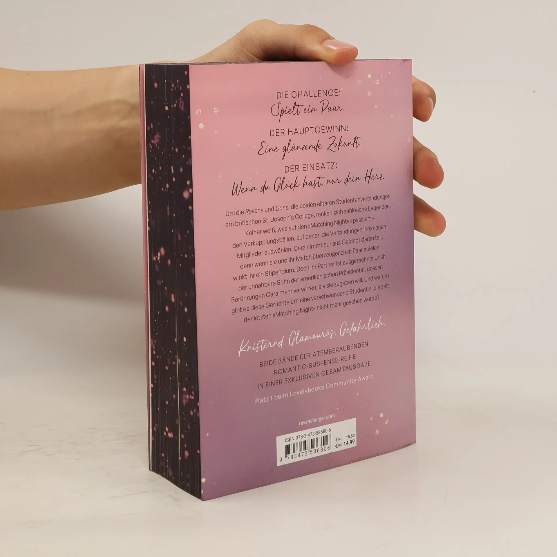 In "Die Challenge" nimmt Cara an den geheimnisvollen "Matching Nights" teil, um ein Stipendium zu gewinnen. Ihr Partner ist Josh, der Sohn der US-Präsidentin, was sie verwirrt. Zudem gibt es Gerüchte über eine verschwundene Studentin. Eine aufregende Mischung aus Romantik und Spannung erwartet die Leser.