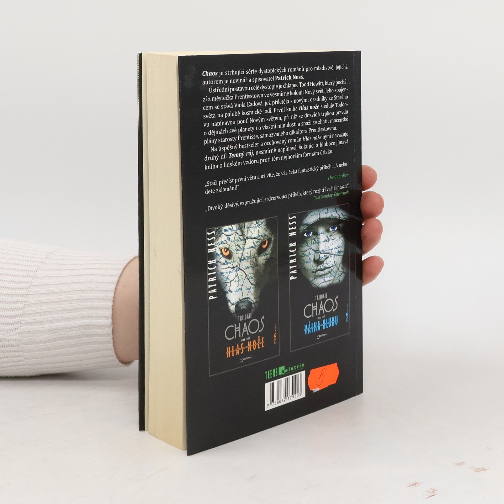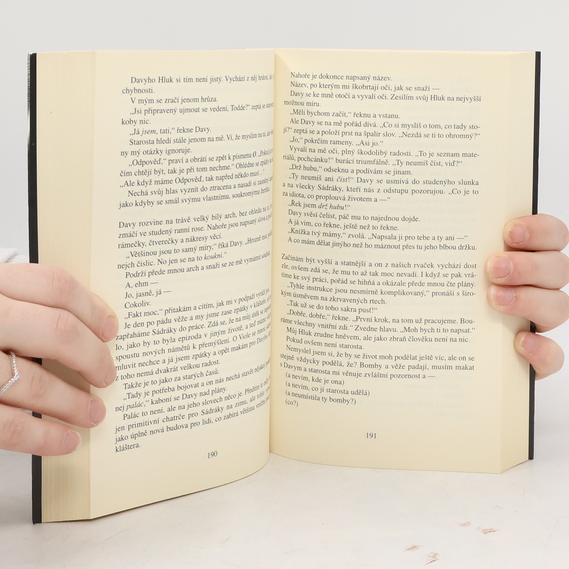Po napínavém závěru prvního dílu se třináctiletý Todd Hewitt probouzí jako vězeň v Novém Prentisstownu, jenž padl do rukou diktátora a samozvaného prezidenta Prentisse. Také Toddova přítelkyně Viola se ocitla v zajetí a Todd se rozhodne, že ji najde a zachrání. Musí však svůj záměr držet v tajnosti, což nesmírně ztěžuje Hluk, který od války s domorodci vyzrazuje myšlenky. Zdá se však, že vynalézavý Prentiss objevil způsob, jak Hluk zkrotit nejen u sebe, ale i svých pochopů. V této knize se z nepřátel stávají přátelé a z přátel nepřátelé a čtenáři se bude opět svírat žaludek. Okolnosti nutí Todda k činům, které by nikdy předtím neudělal, a začíná tak ztrácet sám sebe. Věci přestávají být černé a bílé, přičemž odstíny šedi mohou být velmi nebezpečné. Jedno však o Toddovi víme – je silný. A v jádru dobrý. Dokáže v této zkoušce obstát a vyjít z ní nezlomený? Najde svoji Violu? Milovníci dobré sci-fi se budou těšit na další pokračování této svižné a imaginativní série.