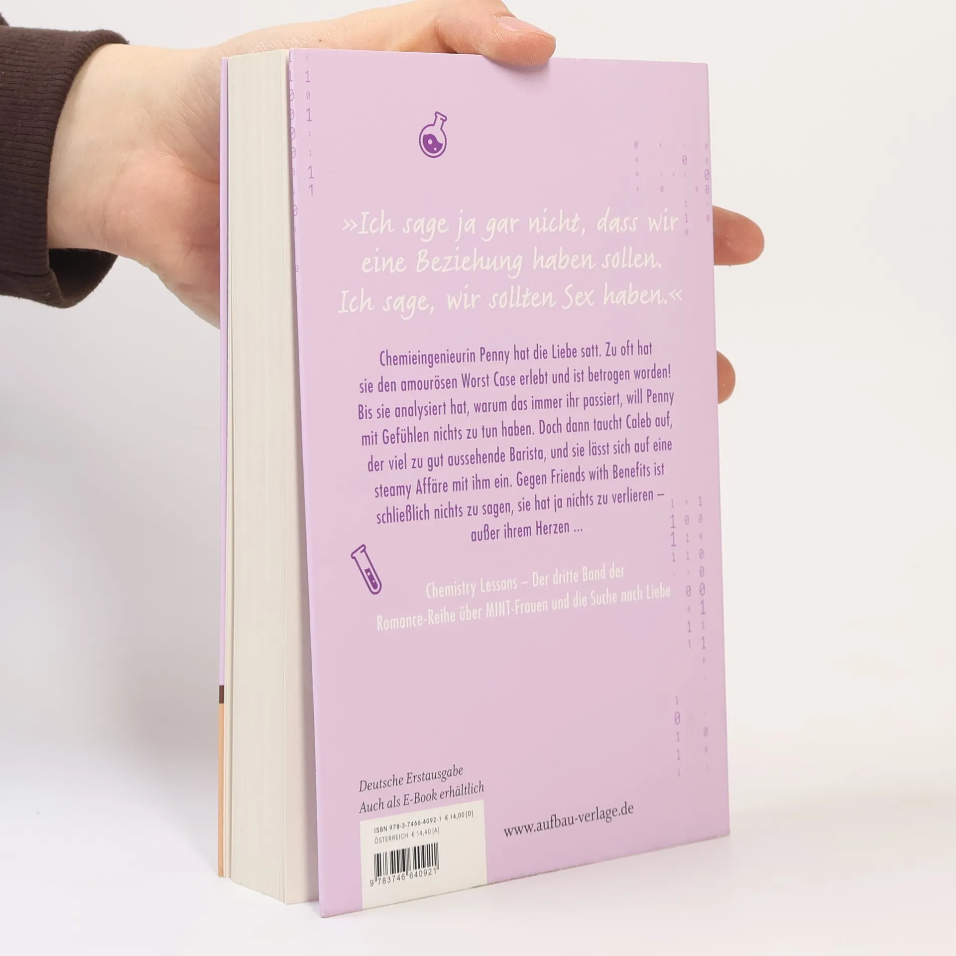 In "Chemistry Lessons" trifft die Chemieingenieurin Penny auf den attraktiven Barista Caleb. Nach schmerzhaften Erfahrungen mit der Liebe will sie nur eine unverbindliche Affäre. Doch während sie sich auf eine steamy Beziehung einlässt, muss sie sich fragen, ob sie wirklich ihr Herz schützen kann.