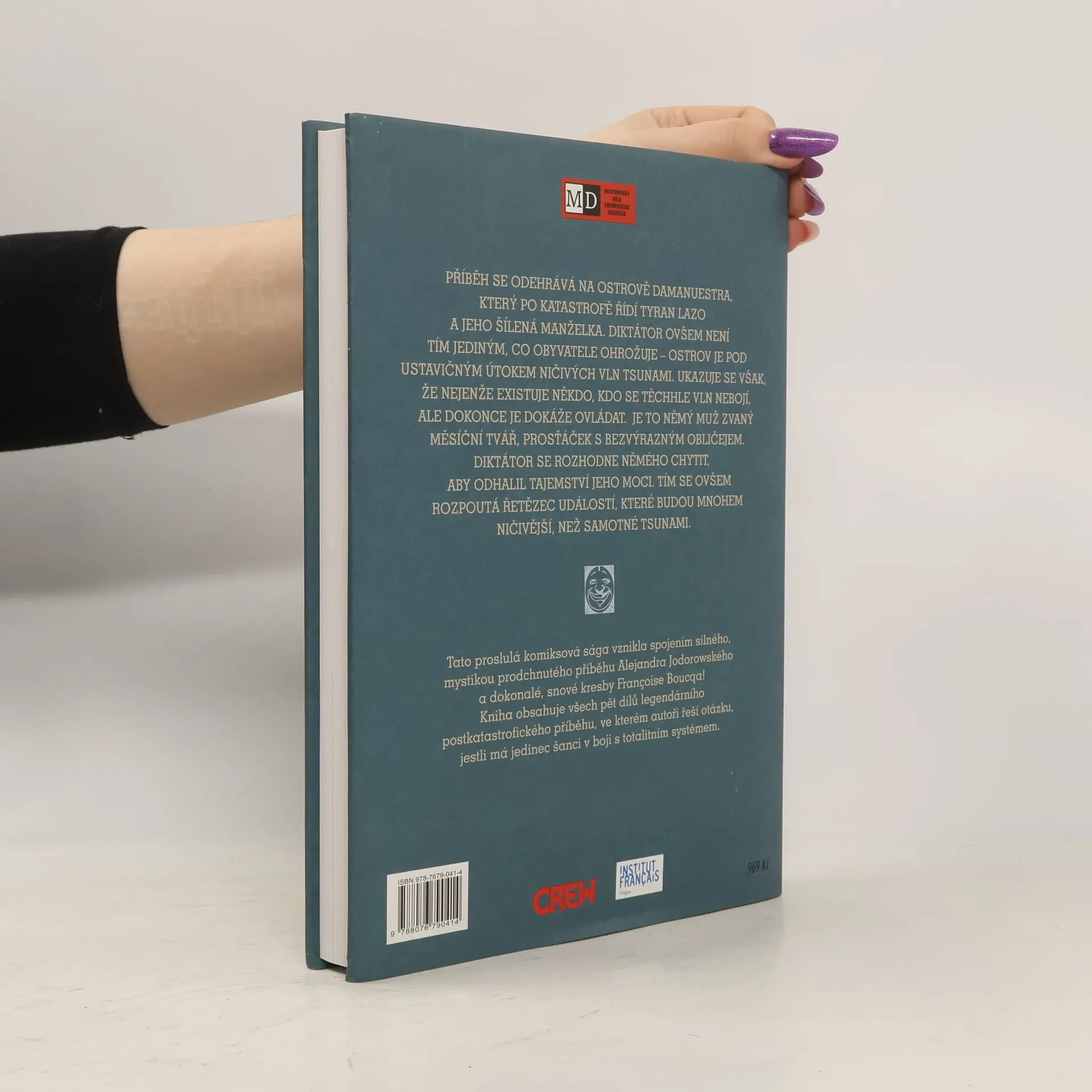 Děj se odehrává na ostrově Damanuestra, který po katastrofě řídí tyran Lazo a jeho šílená manželka. Problémem tohohle ostrova jsou neustálé útoky vln ničivého cunami. Ukazuje se ale, že nejenže existuje někdo, kdo se těchhle vln nebojí, ale dokonce je dokáže ovládat. Je to němý muž zvaný Měsíční tvář, prosťáček s bezvýrazným obličejem. Diktátor se rozhodne němého chytit, aby odhalil tajemství jeho moci. Měsíční tvář přináší spojení silného příběhu a dokonalé, snové kresby. V jedné knize najdete všech pět dílů postkatastrofického příběhu, ve kterém autoři řeší otázku, jestli má jedinec šanci v boji s totalitním systémem.