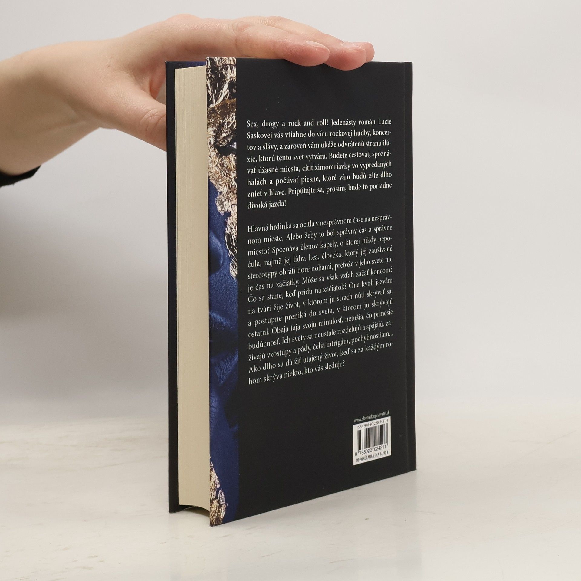 Sex, drogy a rock and roll! Jedenásty román Lucie Saskovej vás vtiahne do víru rockovej hudby, koncertov a slávy, a zároveň vám ukáže odvrátenú stranu ilúzie, ktorú tento svet vytvára. Budete cestovať, spoznávať úžasné miesta, cítiť zimomriavky vo vypredaných halách a počúvať piesne, ktoré vám budú ešte dlho znieť v hlave. Pripútajte sa, prosím, bude to poriadne divoká jazda! Hlavná hrdinka sa ocitla v nesprávnom čase na nesprávnom mieste. Alebo žeby to bol správny čas a správne miesto? Spoznáva členov kapely, o ktorej nikdy nepočula, najmä jej lídra Lea, človeka, ktorý jej zaužívané stereotypy obráti hore nohami, pretože v jeho svete nie je čas na začiatky. Môže sa však vzťah začať koncom? Čo sa stane, keď prídu na začiatok? Ona kvôli jazvám na tvári žije život, v ktorom ju strach núti skrývať sa, a postupne preniká do sveta, v ktorom ju skrývajú ostatní. Obaja taja svoju minulosť, netušia, čo prinesie budúcnosť. Ich svety sa neustále rozdeľujú a spájajú, zažívajú vzostupy a pády, čelia intrigám, pochybnostiam... Ako dlho sa dá žiť utajený život, keď sa za každým rohom skrýva niekto, kto vás sleduje?