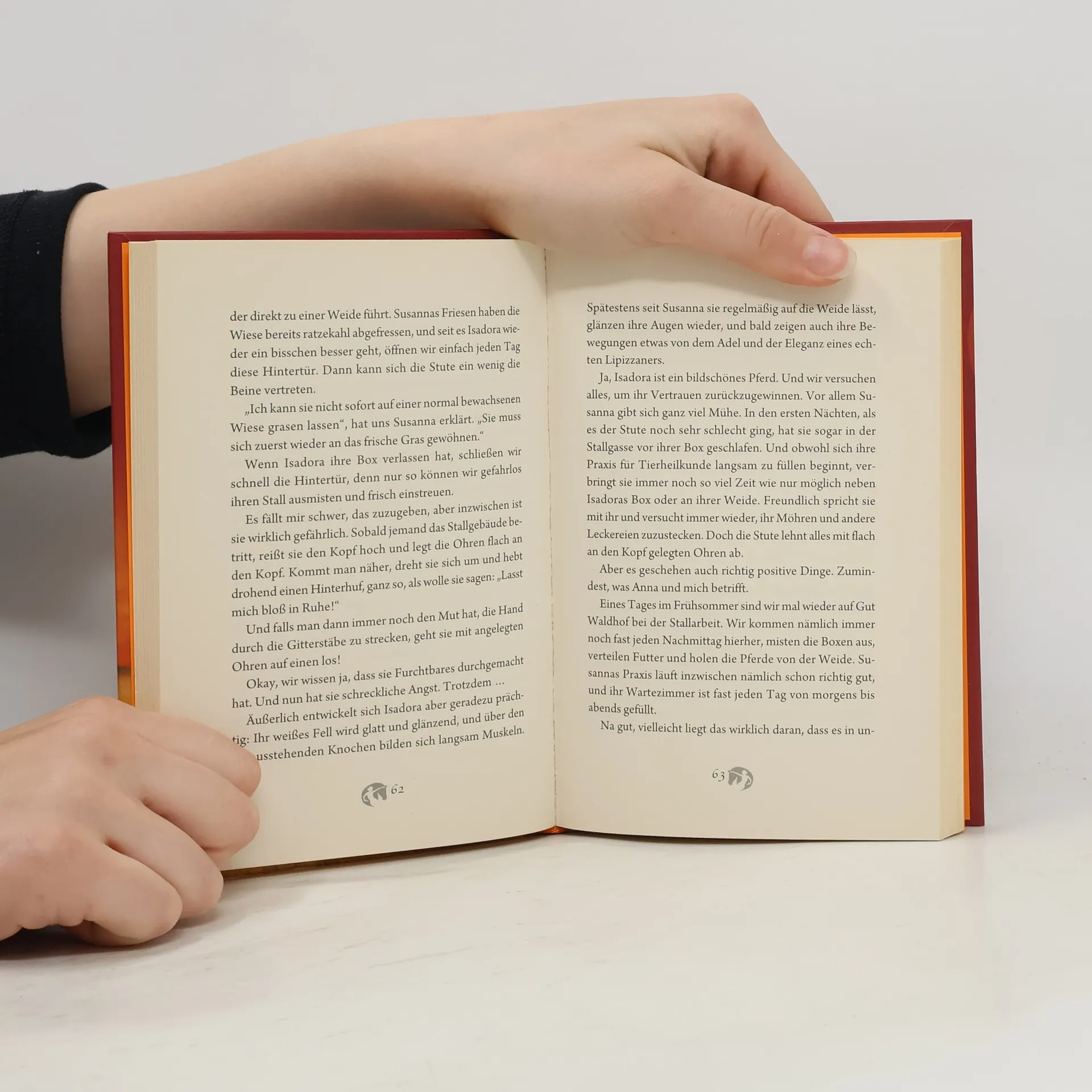 Stumpfes Fell, hervorstehende Rippen und traurige Augen - die Freundinnen Anna und Alex sind schockiert, als sie in einem Schuppen eine völlig verwahrloste Lipizzanerstute entdecken. Mit Hilfe ihrer erwachsenen Freundin Susanna, Showreitern bei der Apassionata, können sie die Stute retten, doch Isadora ist total verstört und allen Menschen gegenüber misstrauisch. Da taucht der geheimnisvolle Junge Paul auf, und zwischen ihm und Isadora entsteht eine fast magische Verbindung ...