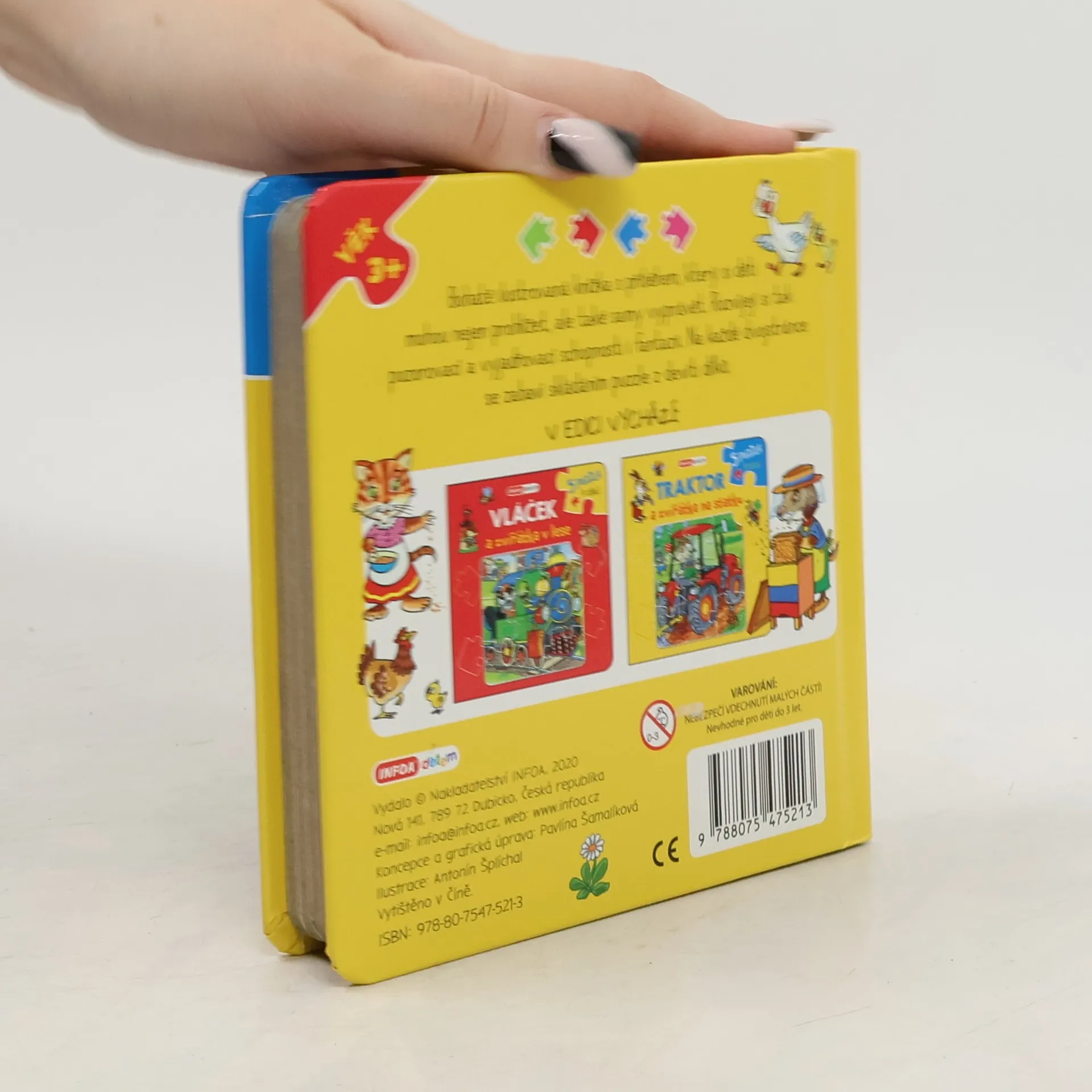 Bohatě ilustrovaná knížka s příběhem, který si děti mohou nejen prohlížet, ale také samy vyprávět. Rozvíjejí si tak pozorovací a vyjadřovací schopnosti i fantazii. Na každé dvojstránce se zabaví skládáním puzzle z devíti dílků.