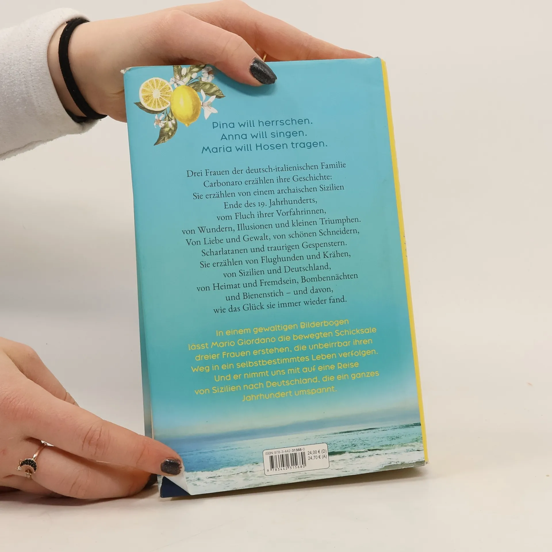 Drei Frauen der deutsch-italienischen Familie Carbonaro erzählen ihre Schicksale im archaischen Sizilien des 19. Jahrhunderts. Ihre Geschichten handeln von Liebe, Gewalt, Heimat und Fremdsein und zeichnen den Weg zu einem selbstbestimmten Leben über ein ganzes Jahrhundert hinweg. Ein fesselndes Familienepos von Mario Giordano.
