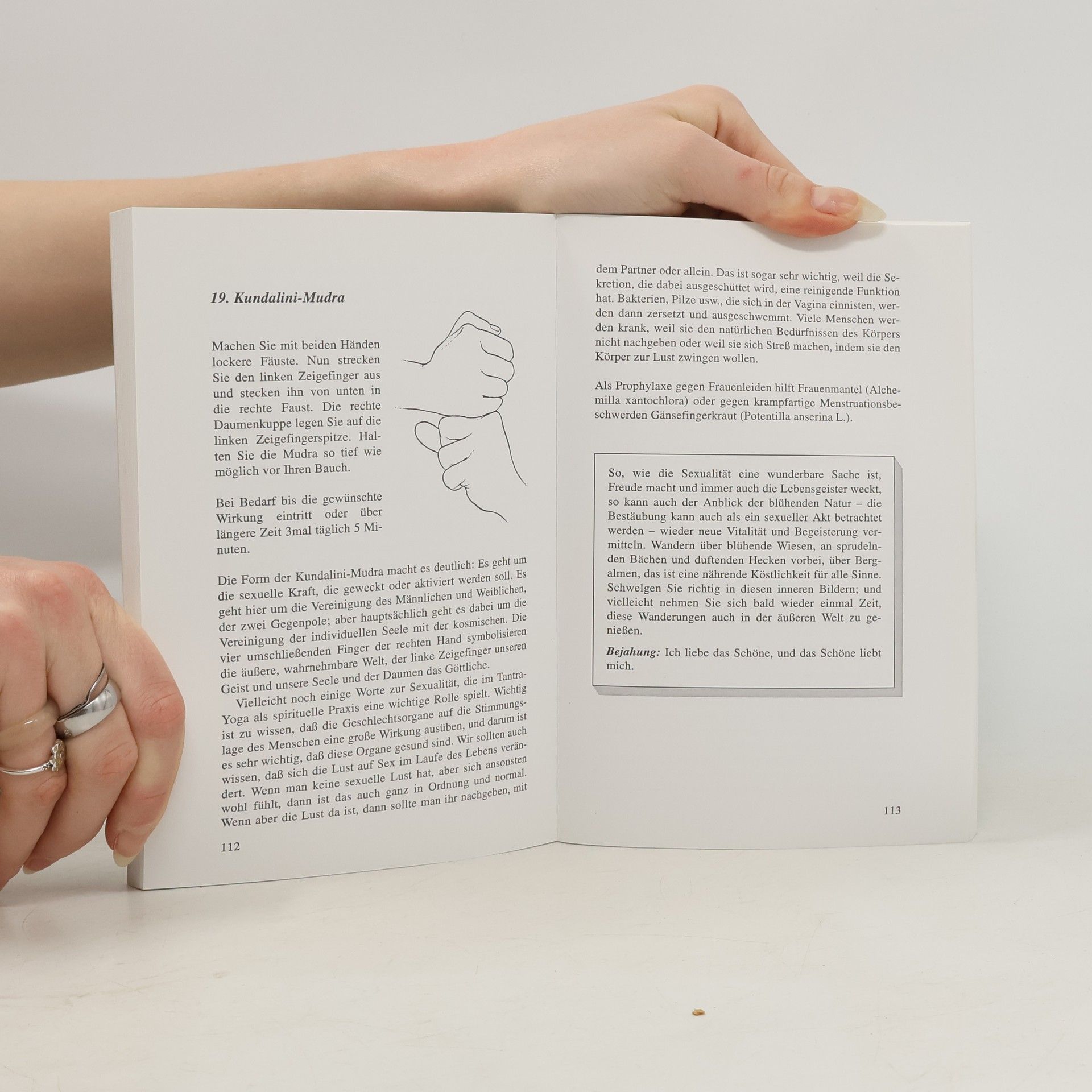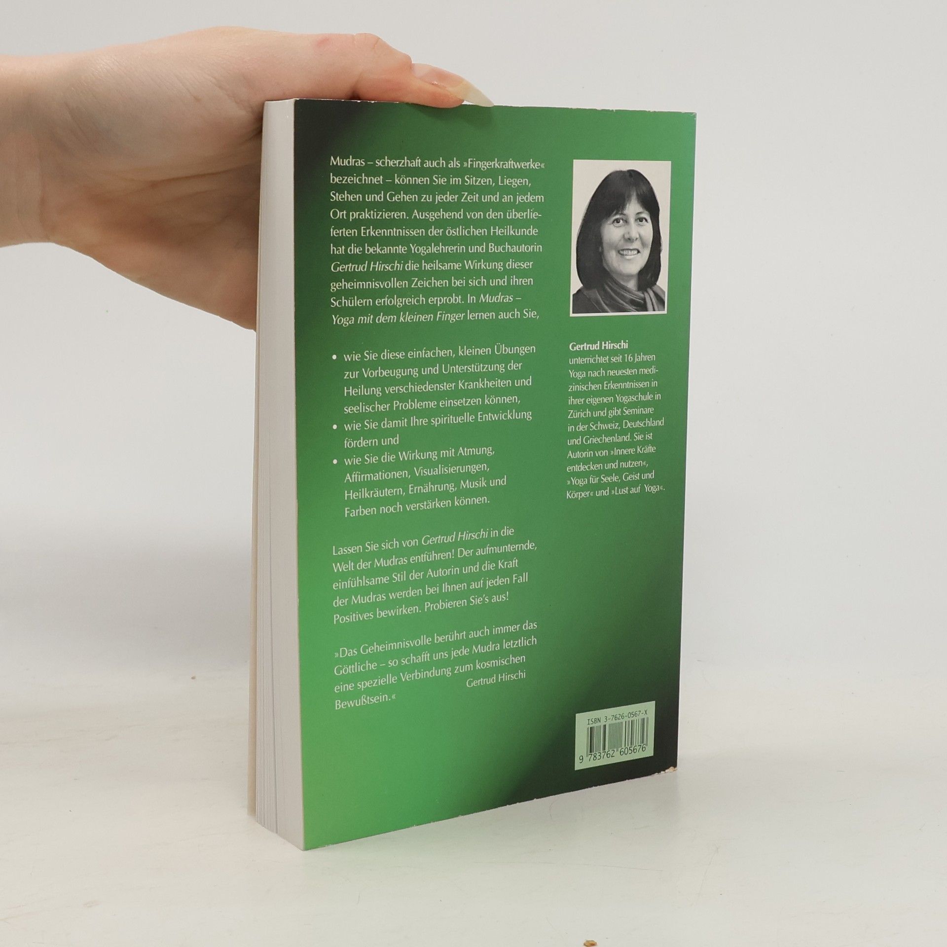 Mudras - scherzhaft auch als "Fingerkraftwerke" bezeichnet - können Sie im Sitzen, Liegen, Stehen und Gehen zu jeder Zeit und an jedem Ort praktizieren. Ausgehend von den überlieferten Erkenntnissen der östlichen Heilkunde hat die Yogalehrerin und Autorin die heilsame Wirkung dieser Zeichen bei sich und ihren Schülern erprobt. Sie lernen, wie Sie die Übungen zur Vorbeugung und Unterstützung der Heilung verschiedenster Krankheiten und seelischer Probleme einsetzen können, wie Sie damit Ihre spirituelle Entwicklung fördern und wie Sie die Wirkung mit Atmung, Affirmationen, Visualisierungen, Heilkräutern, Ernährung, Musik und Farben noch verstärken können.