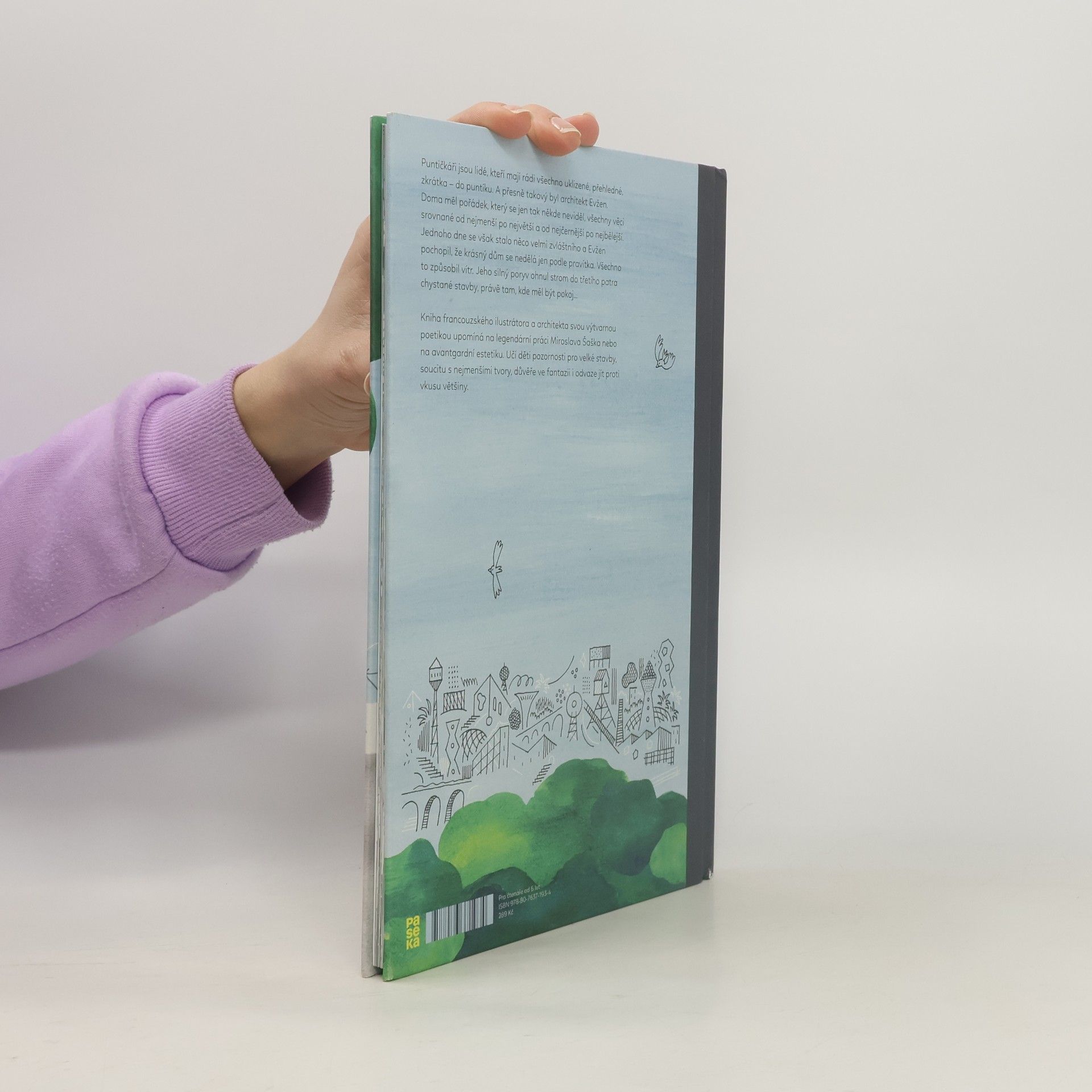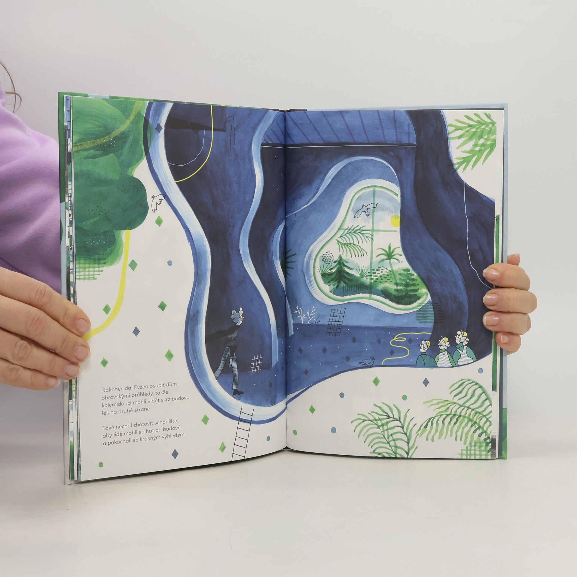 Evžen architekt navrhuje budovy, které jsou neuvěřitelně rovné a uspořádané. Je velmi hrdý na své nejnovější dílo - obrovský dům s dokonale kolmými stěnami a okny. Jednoho dne ho překvapí, že v obývacím pokoji domu roste strom. Evžen místo toho, aby jej pokácel, studuje strom a žasne nad tím, jak jeho větve, kořeny, listy a kmen rostou v elegantních rozměrech. Evžen najednou vidí přírodu zcela novým způsobem - ne jako opak přesného řádu, ale jako něco s vlastním typem dokonalosti. Hravé ilustrace Thibauta Rassata seznamují mladé čtenáře se základními architektonickými a geometrickými principy a baví je Evženovou pichlavou osobností a radostným objevem.