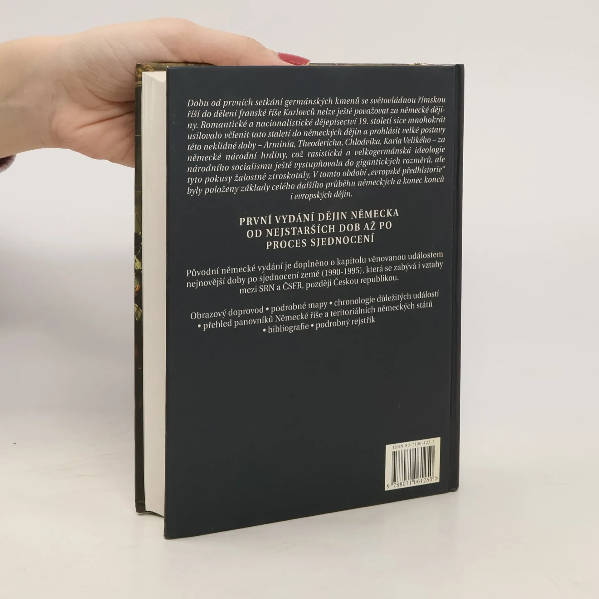 Souhrnné dějiny našeho osudového souseda od nejstarších dob až po sjednocení v roce 1990. Kniha je doplněna kapitolou věnovanou událostem nejnovější doby po sjednocení zemí (1990–1995), která se zabývá i vztahy mezi SRN a ČSFR, později Českou republikou.