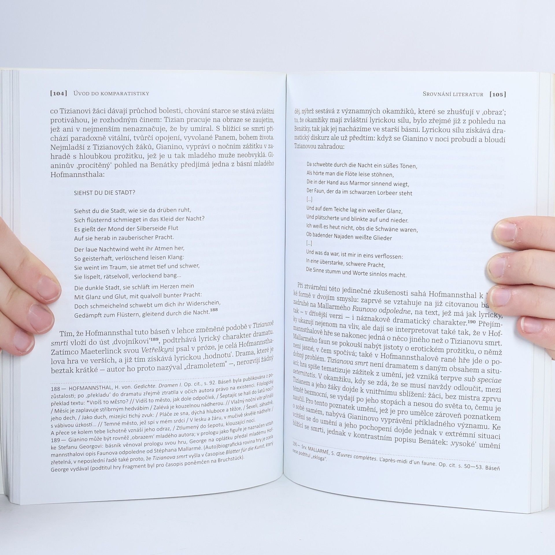 Angelika Corbineau-Hoffmannová (1949), profesorka srovnávací literatury na univerzitě v Lipsku, je uznávaná komparatistka, která zvláštně v posledních letech vydala četné a významné publikace. Úvod do komparatistiky (Einführung in die Komparatistik) z roku 2004 je přepracovaným vydáním knihy, jejímž cílem je seznámit začínající studenty srovnávací literatury s nejdůležitejšími otázkami a koncepty oboru. Autorka objasňuje základní pojmy a uvádí do dnes již poměrně složité debaty vztahů mezi (národními) literárními texty. Úvod do komparatistiky je odpovídajícím způsobem strukturován do jednotlivých částí od historického vyhraňování oboru (Goethův pojem světové literatury) až po přehled o současných debatách. Corbineau-Hoffmannová se věnuje pojmu „vlastního" a „cizího"; vztahu literatury k jiným médiím: výtvarnému umění a hudbě; a problému překladu, který přestává být translatologickým tématem, ale stává se stále aktuálnější otázkou literární vědy. Právě z tohoto důvodu tato kniha dává potřebné impulsy české komparatistice: přestože velmi přesvědčivé textové ukázky přibližují převážně svět románský a germánský, jsou její témata nová: ukazují další cesty literární vědy, která se odvrací od teoretické dekonstrukce a přiklání ke zkoumání kulturního kontextu, ovlivňování a prostupování kultur.