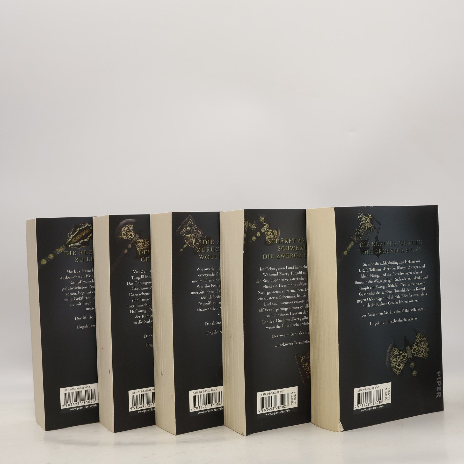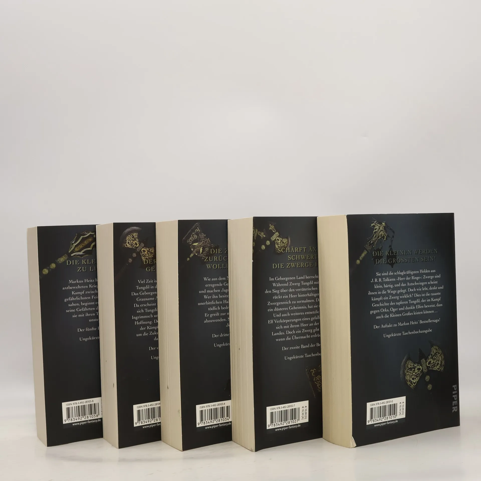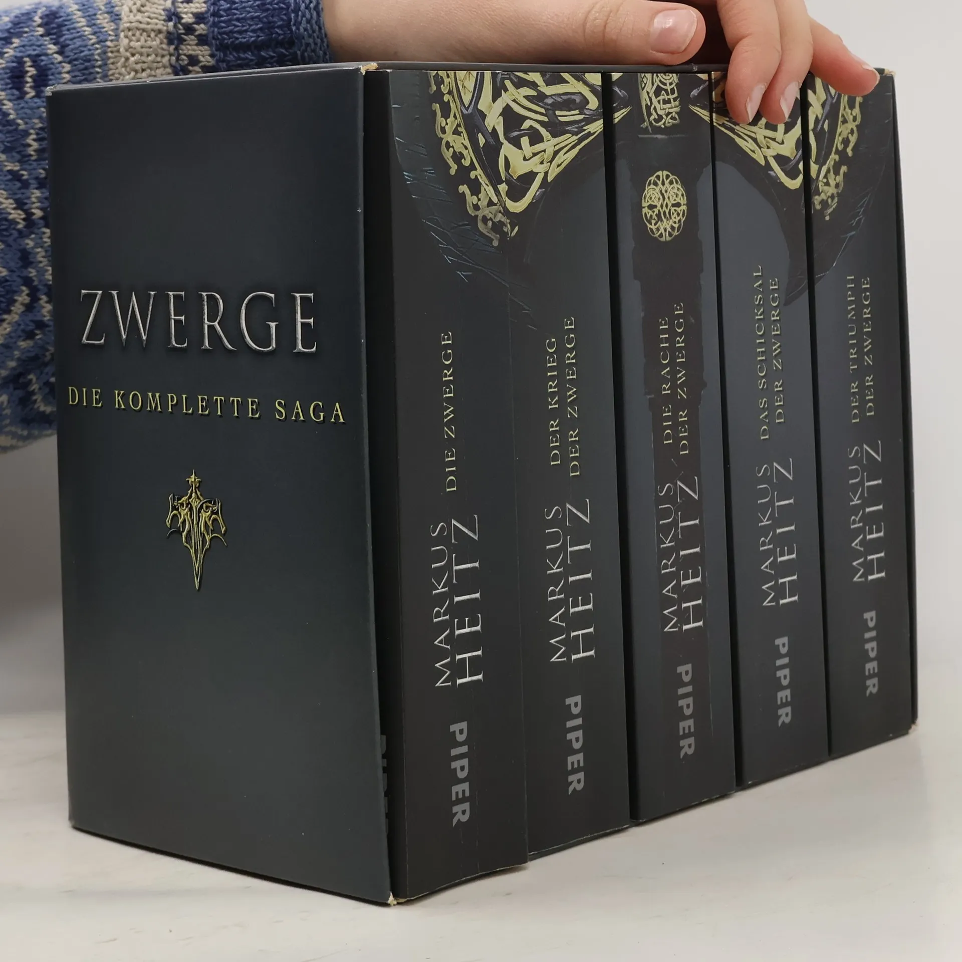 »Die Zwerge« sind die meistgekaufte deutschsprachige Fantasyserie unserer Zeit. Über fünf Bände hat Markus Heitz die Abenteuer des einfachen Schmiedegesellen Tungdil erzählt, der zum unsterblichen Helden eines ganzen Volkes wird. Im Kampf gegen dunkle Albae, Verräter in den eigenen Reihen und zwielichtige Magier beweisen Tungdil und seine Verbündeten, dass auch die Kleinen ganz Großes leisten können. Erstmals liegen nun alle fünf Bände in einmaliger Sammlerausstattung vor.
