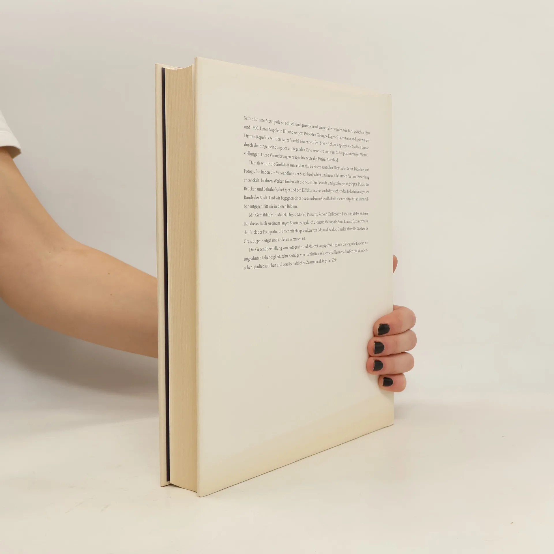 Paris wurde in den Jahren 1860-1900 radikal umgestaltet zur ersten Metropole der Moderne. Die Impressionisten und ihre Zeitgenossen haben mit neuen Techniken und Sichtweisen auf die sich rasant verändernde Zeit reagiert. Zum ersten Mal wurde die Grossstadt zu einem zentralen Thema der Kunst. In Gemälden und Fotografien entstanden Ansichten von Boulevards und Plätzen, Metro-Stationen und Bahnhöfen, vom Eiffelturm und Industrieanlagen. Die Kunst zeichnete ein Porträt des urbanen Lebens, Arbeit, Freizeit, Armut und Wohlstand. Der Katalog zur grossen Essener Ausstellung präsentiert umfassend diesen Blick auf Paris. Neben bedeutenden Künstlern wie Manet, Pissarro, Monet, Degas und Caillebotte sind bedeutende Vertreter der noch jungen Fotografie vertreten: Marville, Baldus, Atget, Lartigue u.v.a. Ausstellung: Museum Folkwang, Essen, 2. Oktober 2010 - 30. Januar 2011.