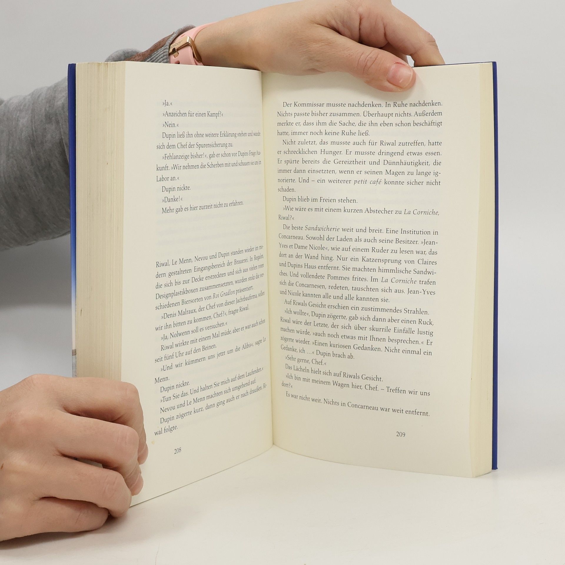 In der »blauen Stadt« Concarneau, kurz vor Pfingsten, feiert die Bevölkerung in der Altstadt Ville Close den Sommerbeginn mit Musik und Tanz. Doch die festliche Stimmung wird jäh gestört, als Kommissar Dupin vor seinem Lieblingsrestaurant, dem Amiral, einen Toten entdeckt. Zu allem Überfluss sind seine Inspektoren im Urlaub und Nolwenn ist unerreichbar. Zusammen mit zwei neuen Kolleginnen muss Dupin herausfinden, wer es auf Docteur Chaboseau, einen angesehenen Arzt aus einer einflussreichen Familie, abgesehen hatte. Weder seine Frau noch enge Freunde, ein Apotheker und ein Weinhändler, können sich einen Reim darauf machen. Könnten die Vorlieben des Arztes, der Kunstsammler war und in lokale Brauereien sowie Fischkonservenfabriken investierte, eine Rolle spielen? Während Dupin fieberhaft nach Hinweisen sucht, kommt es zu einem Anschlag, der die gesamte Stadt in Aufruhr versetzt. Spannend und stimmungsvoll wird Concarneau, mit seinen Häfen, Stränden, Galerien und Traditionen, zum lebendigen Protagonisten dieser Kriminalgeschichte, die die Besonderheiten der Stadt und ihrer Bewohner eindrucksvoll einfängt.