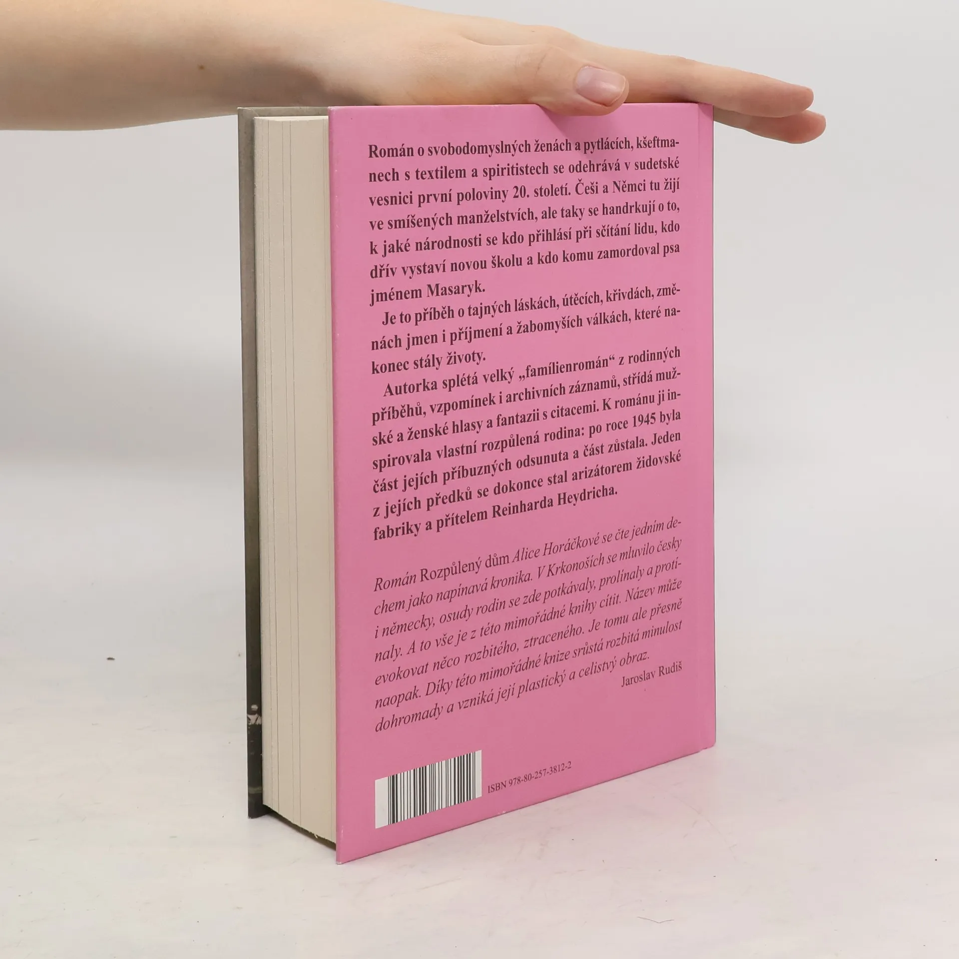 K románové kronice ze Sudet inspirovala autorku vlastní rozpůlená rodina: po roce 1945 byla část jejích příbuzných odsunuta a část zůstala. Horáčková se ve své čtvrté knize vrací do malebné česko-německé vesnice první poloviny 20. století a z odposlouchaných historek, vzpomínek i archivních záznamů splétá velký „familienroman“. Mezi její předky patřili pytláci a pašeráci, svobodomyslné ženy i úspěšní kšeftmani s textilem. Je to příběh o tajných láskách, změnách identit, útěcích, křivdách a žabomyších válkách, které nakonec stály životy. Češi a Němci tu žijí ve smíšených manželstvích, ale taky se handrkují o to, kdo komu zamordoval psa, kdo dřív vystaví novou školu a k jaké národnosti se kdo přihlásí ve sčítání lidu. Z jedné strany je přitom diriguje Jednota severočeská a z druhé Deutscher Kulturverband. Rozpůlený dům vznikal více než čtyři roky a autorka v něm střídá perspektivy, mužské a ženské hlasy, fantazii s citacemi. Při rešerších se dozvěděla víc, než by jí bylo milé: mimo jiné i to, že jeden z jejích předků se stal arizátorem židovské fabriky a přítelem Reinharda Heydricha.