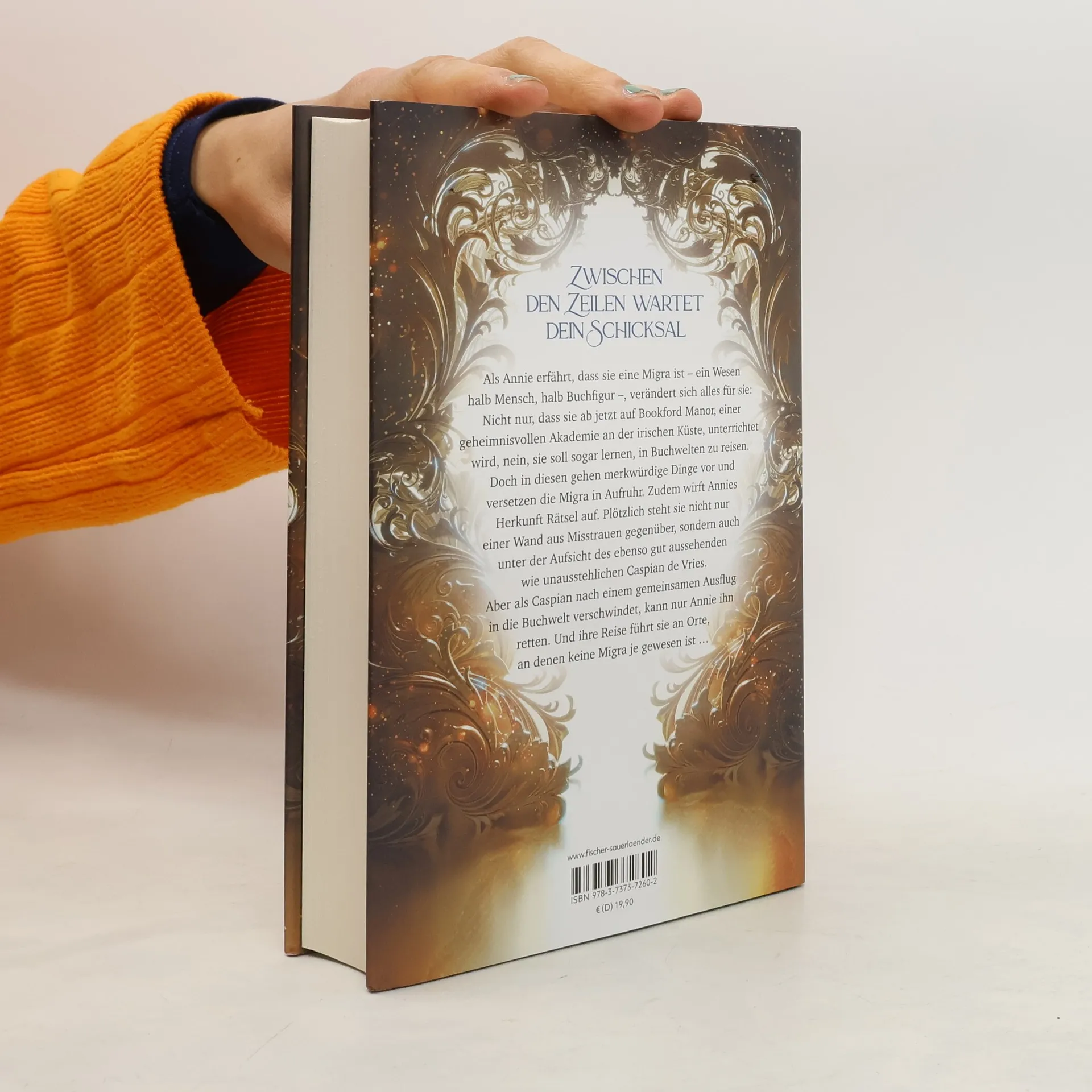 Der Auftakt zu einer neuen Fantasy-Reihe mit Enemies-to-Lovers-Romance. Die sechzehnjährige Annie entdeckt, dass sie eine Migra ist und an der geheimnisvollen Akademie Bookford Manor unterrichtet wird. Sie lernt, in Buchwelten zu reisen, während sie sich mit Misstrauen und dem charmanten Caspian de Vries auseinandersetzen muss.