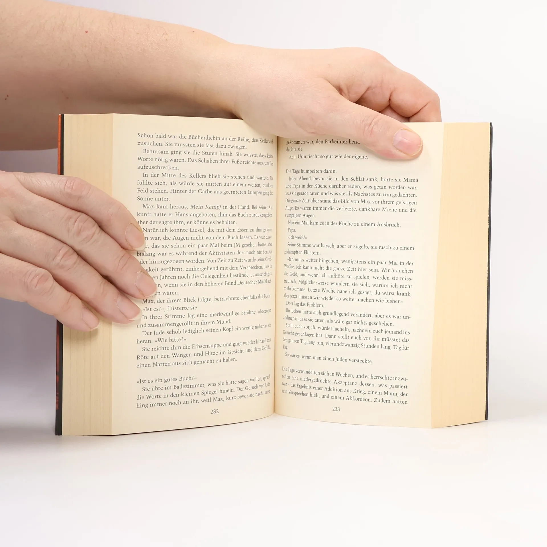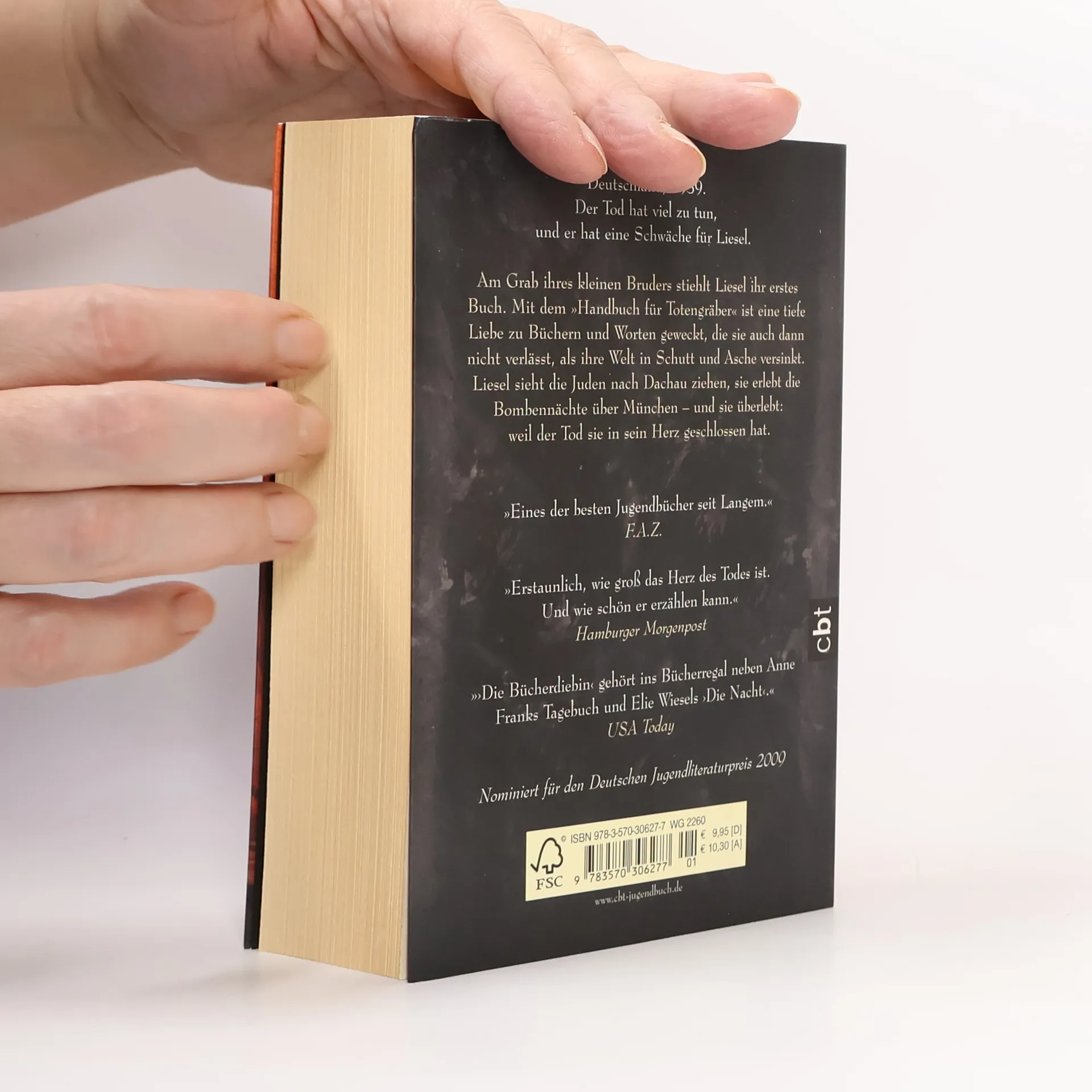 Der 1939, Nazideutschland. Der Tod hat viel zu tun und eine Schwäche für Liesel Meminger Am Grab ihres kleinen Bruders stiehlt Liesel ihr erstes Buch. Mit dem 'Handbuch für Totengräber' lernt sie lesen und stiehlt fortan Bücher, überall, wo sie zu finden sind: aus dem Schnee, den Flammen der Nazis und der Bibliothek des Bürgermeisters. Eine tiefe Liebe zu Büchern und Worten ist geweckt, die sie auch nicht verlässt, als die Welt um sie herum in Schutt und Asche versinkt. Liesel sieht die Juden nach Dachau ziehen, sie erlebt die Bombennächte über München – und sie überlebt, weil der Tod sie in sein Herz geschlossen hat.
