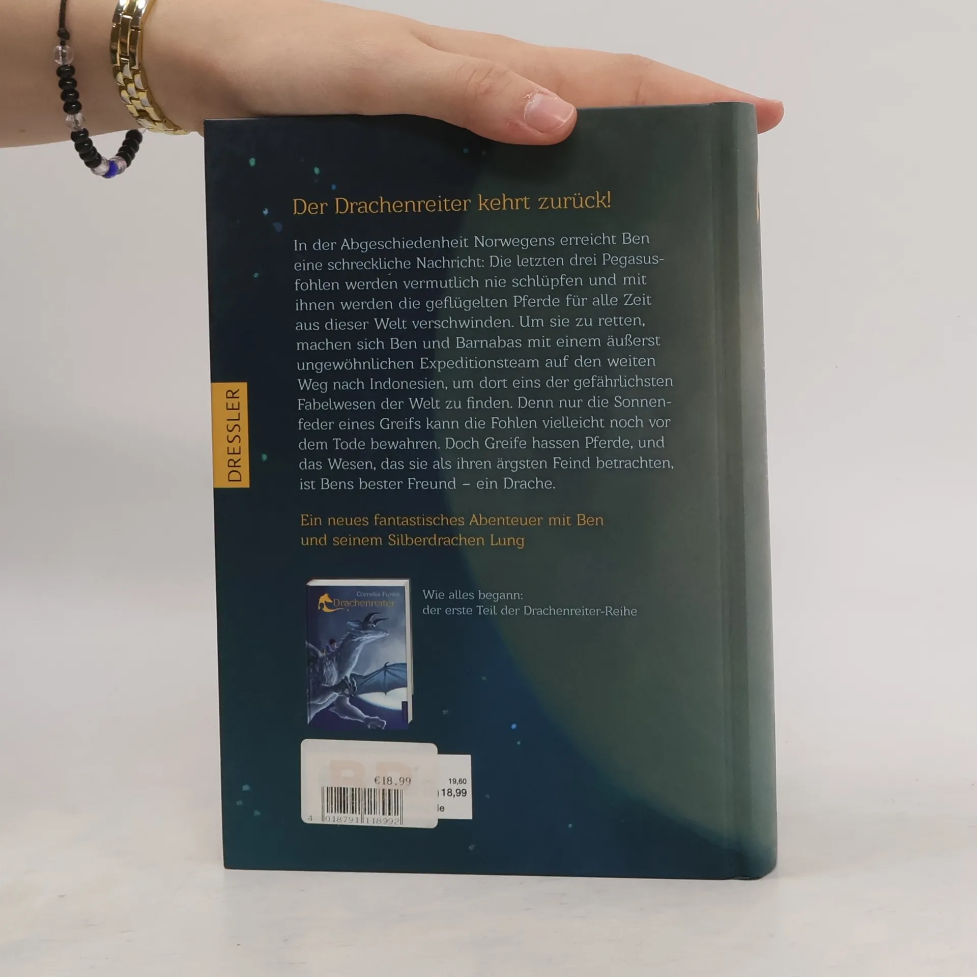 Der Drachenreiter kehrt zurück: Fortsetzung von Cornelia Funkes erfolgreichstem Kinderroman! Zwei Jahre nach ihrem Sieg über Nesselbrand erwartet Ben, Barnabas und Fliegenbein ein neues Abenteuer: Der Nachwuchs des letzten Pegasus ist bedroht! Nur die Sonnenfeder eines Greifs kann ihre Art noch retten. Gemeinsam mit einer fliegenden Ratte, einem Fjordtroll und einer nervösen Papageiin reisen die Gefährten nach Indonesien. Auf der Suche nach dem gefährlichsten aller Fabelwesen merken sie schnell: sie brauchen die Hilfe eines Drachens und seines Kobolds. Die Feder eines Greifs ist Lesegenuss vom Feinsten: spannend, magisch und atmosphärisch. Ein großer, fantastischer Roman der international gefeierten, preisgekrönten Autorin Cornelia Funke.