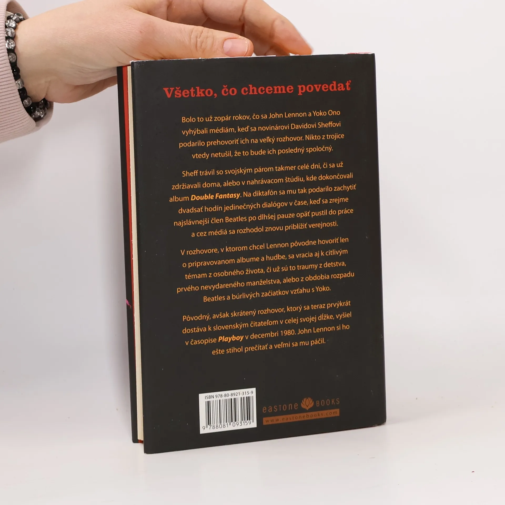 Posledný veľký rozhovor s Johnom Lennonom a Yoko Ono. V čase tohto veľkého rozhovoru mal John Lennon za sebou už svoje najbúrlivejšie obdobie, pokusy o zmier s ostatnými bývalými členmi skupiny Beatles, aj nevšednú rolu „muža v domácnosti“. So svojou povestnou sebaistotou v ňom vyjadruje svoje najzrelšie a najúprimnejšie názory, ktoré aj dnes dokážu ľudí pre svoju inakosť zaujať. Hovorí o bývalých členoch Beatles, o hudbe všeobecne, o konvenciách v spoločnosti, či o svojom postoji k autoritám, politike a náboženstvu. Cez svoje nefalšované reakcie a autorove opisy situácií, v ktorých rozhovor postupne vznikal, tak dostáva čitateľ jedinečný a komplexný pohľad do života Johna Lennona tesne pred jeho smrťou v decembri 1980.