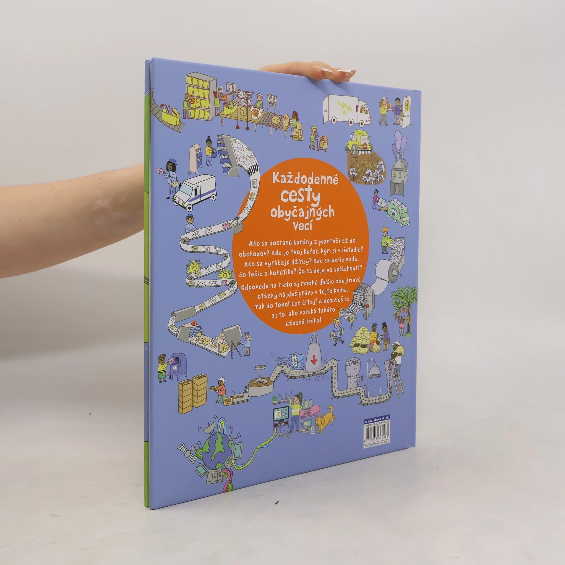 Ako sa dostanú banány z plantáží až do obchodov? Kde sú vaše kufre, kým ste v lietadle? Ako sa vyrábajú džínsy? Kde sa berie voda, čo tečie z kohútika? Čo sa deje po spláchnutí? Odpovede na tieto aj mnohé ďalšie zaujímavé otázky nájdete práve v tejto knihe. Tak do toho! Len čítajte!A dozviete sa aj to, ako vzniká takáto úžasná kniha!