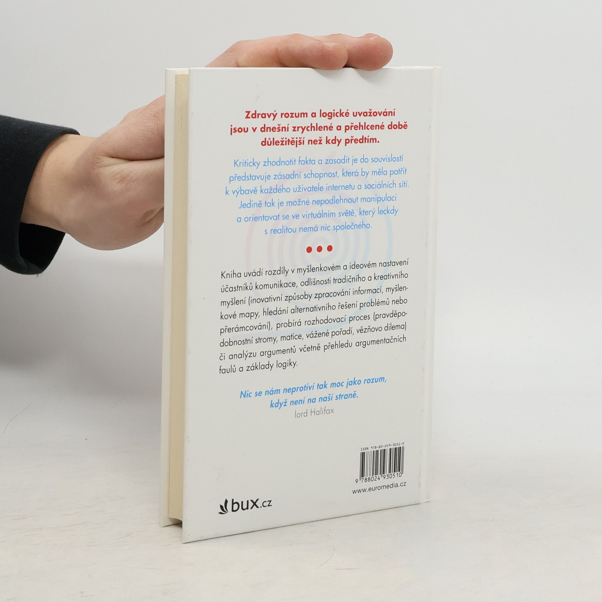 Příručka kritického myšlení, tedy schopnosti kriticky zhodnotit informace a zasadit je do souvislostí, probírá základní oblasti, které se k tématu vážou: rozdíly v myšlenkovém a ideovém nastavení účastníků komunikace, odlišnosti tradičního a kreativního myšlení (inovativní způsoby zpracování informací, tzv. přerámcování, hledání alternativní cesty řešení problémů), proces rozhodování (rozebraný na modelových situacích) či analýzu argumentů (zákonitosti, logické kombinace a sekvence).