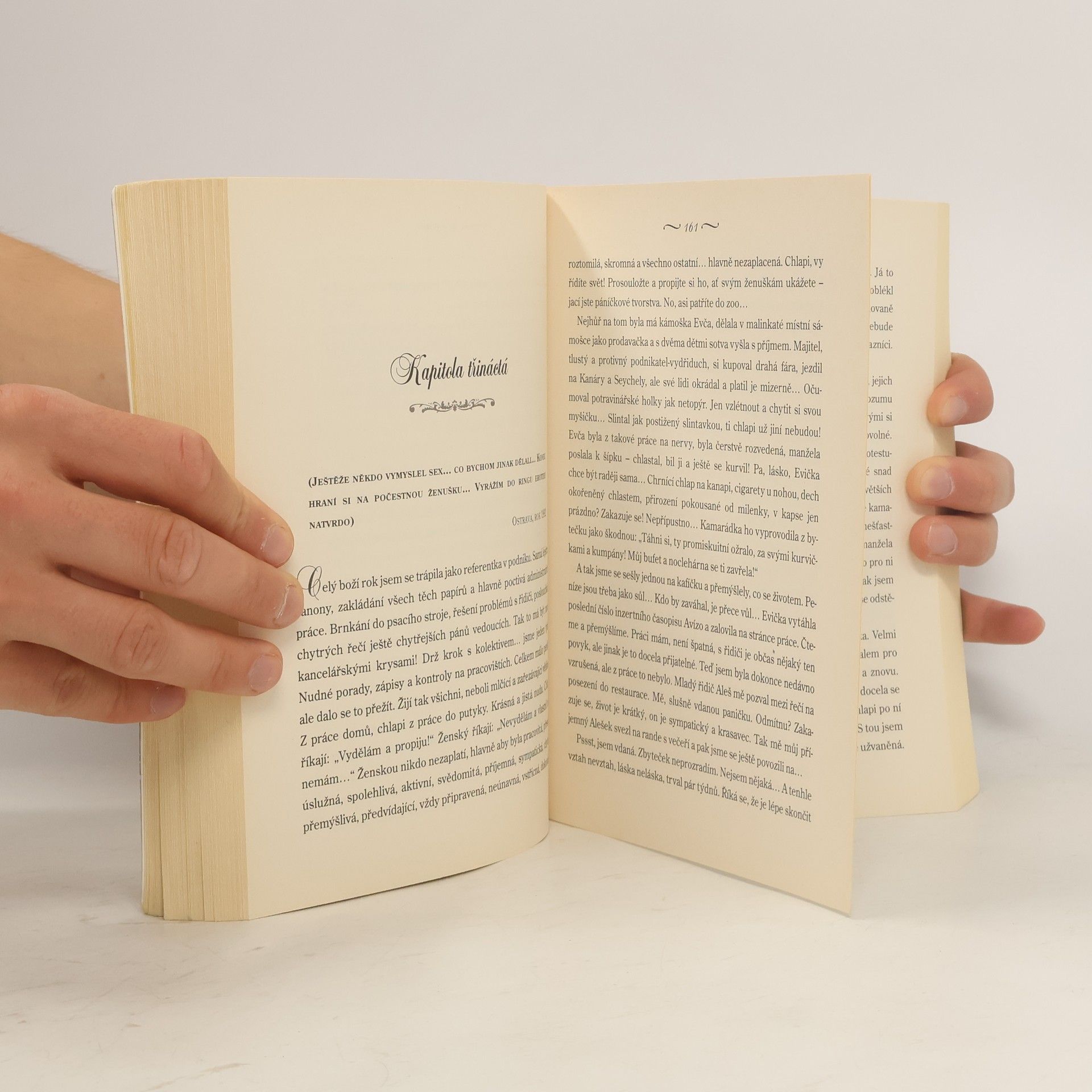 Životní příběh prostitutky, která přes všechny rány osudu zůstala silnou, vyrovnanou a hrdou ženou. Její nelehký osud, vyprávěný s nadhledem a ironií, sleduje čtenář ve dvou rovinách – pasáže o dětství, dospívání a začátcích její netradiční kariéry se prolínají s deníkovými zápisky ze současnosti, kde otevřeně, přesto decentně popisuje svůj běžný den nejen jako prostitutka a majitelka privátu, ale také jako přítelkyně, matka a žena.