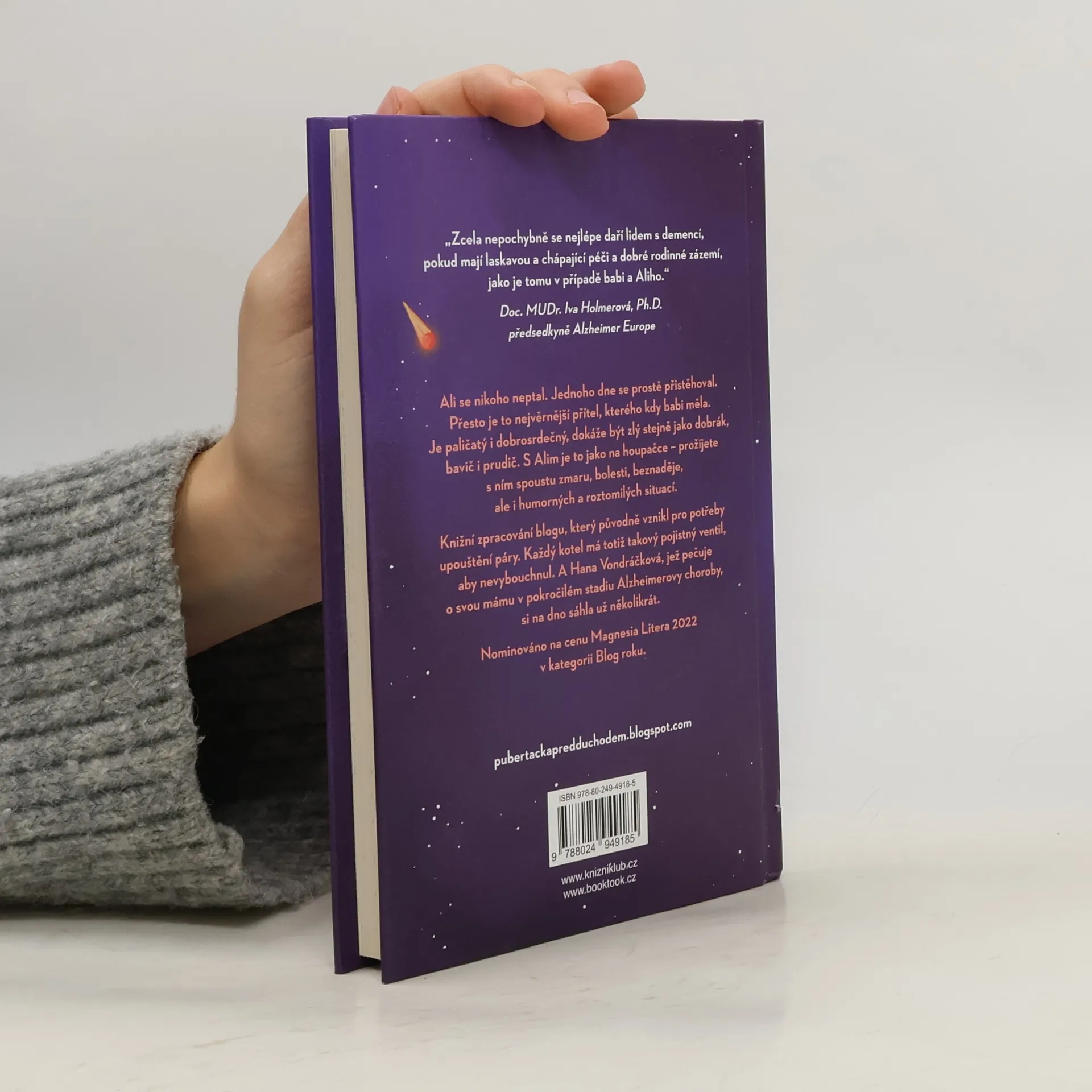 Hana Vondráčková pečuje o mámu v pokročilém stádiu Alzheimerovy choroby. Doma jí říkají Ali a je to nejvěrnější přítel, kterého kdy babi měla. Je paličatý i dobrosrdečný, dokáže být zlý stejně jako dobrák, bavič i prudič. S Alim je to jako na houpačce – prožijte s ním spoustu zmaru, bolesti, beznaděje, ale i humorných a roztomilých situací. Knižní zpracování blogu, který původně vznikl pro potřeby upouštění páry. Každý kotel má totiž takový pojistný ventil, aby nevybouchnul. Nominováno na cenu Magnesia Litera 2022 v kategorii Blog roku.