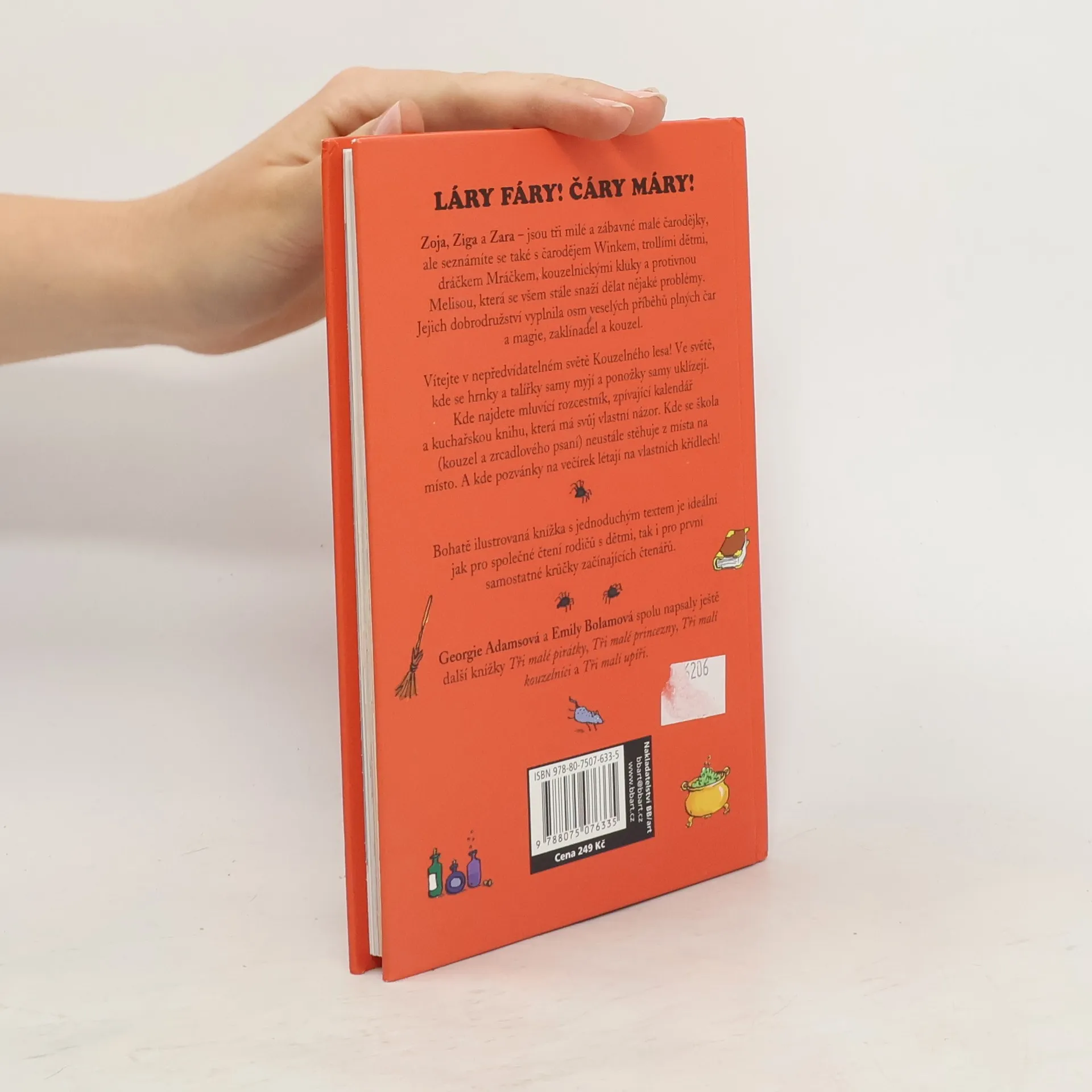 Vítejte v nepředvídatelném světě Kouzelného lesa! Ve světě, kde se hrnky a talířky samy myjí a ponožky samy uklízejí. Kde najdete mluvící rozcestník, zpívající kalendář a kuchařskou knihu, která má svůj vlastní názor. Kde se škola (kouzel a zrcadlového psaní) neustále stěhuje z místa na místo. A kde pozvánky na večírek létají na vlastních křídlech! Seznámíte se se Zojou, Zigou a Zarou, třemi milými a zábavnými malými čarodějkami – a také s čarodějem Winkem, trollími dětmi, dráčkem Mráčkem, kouzelnickými chlapci a protivnou Melisou, která se všem stále snaží dělat nějaké problémy. Jejich dobrodružství vyplnila osm veselých příběhů plných čar a magie, zaklínadel a kouzel. Připravili jsme pro Vás dvě nové knížky Tři malí upíři a Tři malí kouzelníci a tři reedice velmi oblíbených knížek: Tři malé princezny, Tři malé pirátky a Tři malé čarodějky v novém formátu, které vyjdou během podzimu 2016. Bohatě ilustrované knížky s jednoduchým textem jsou ideální jak pro společné čtení rodičů s dětmi, tak i pro první samostatné krůčky začínajících čtenářů.