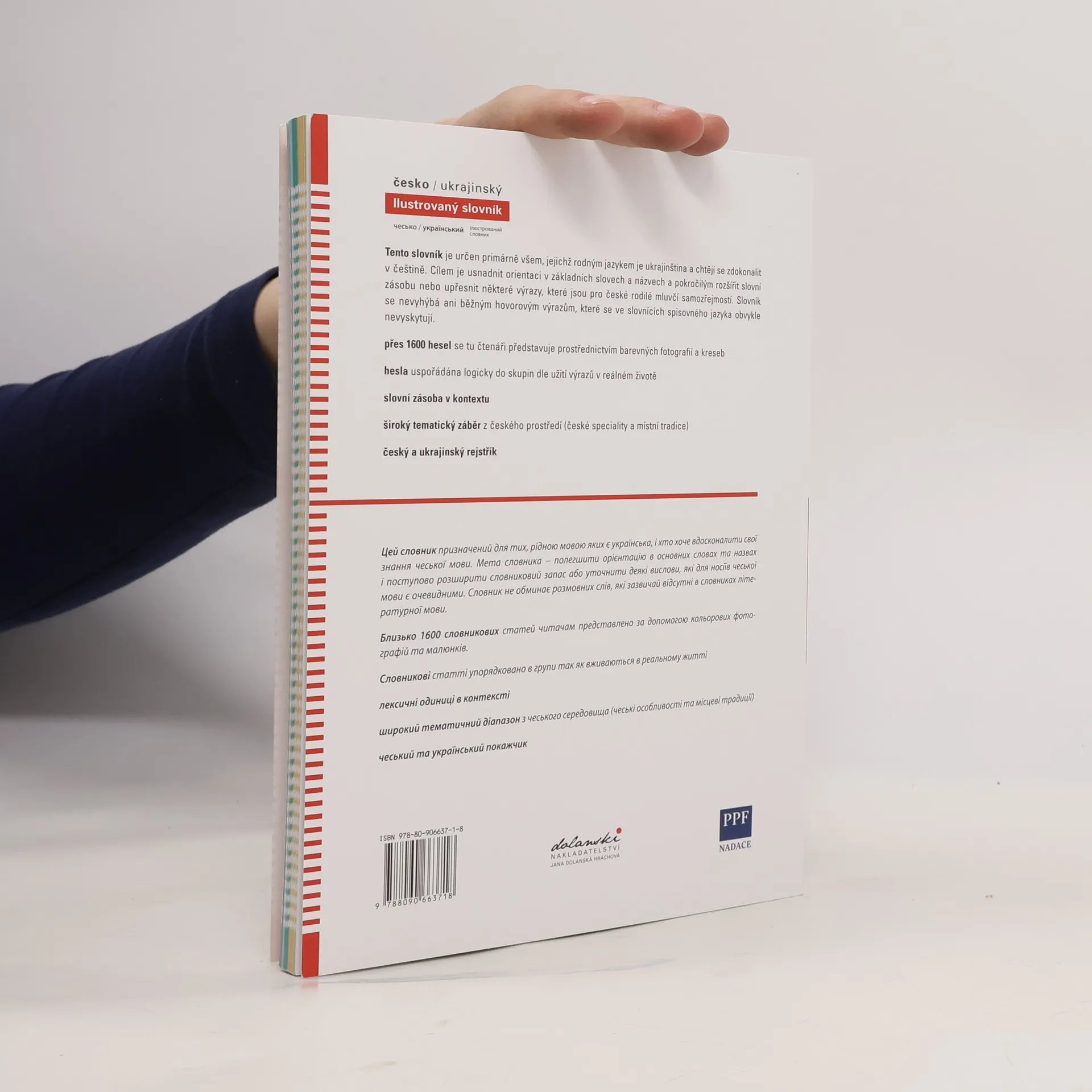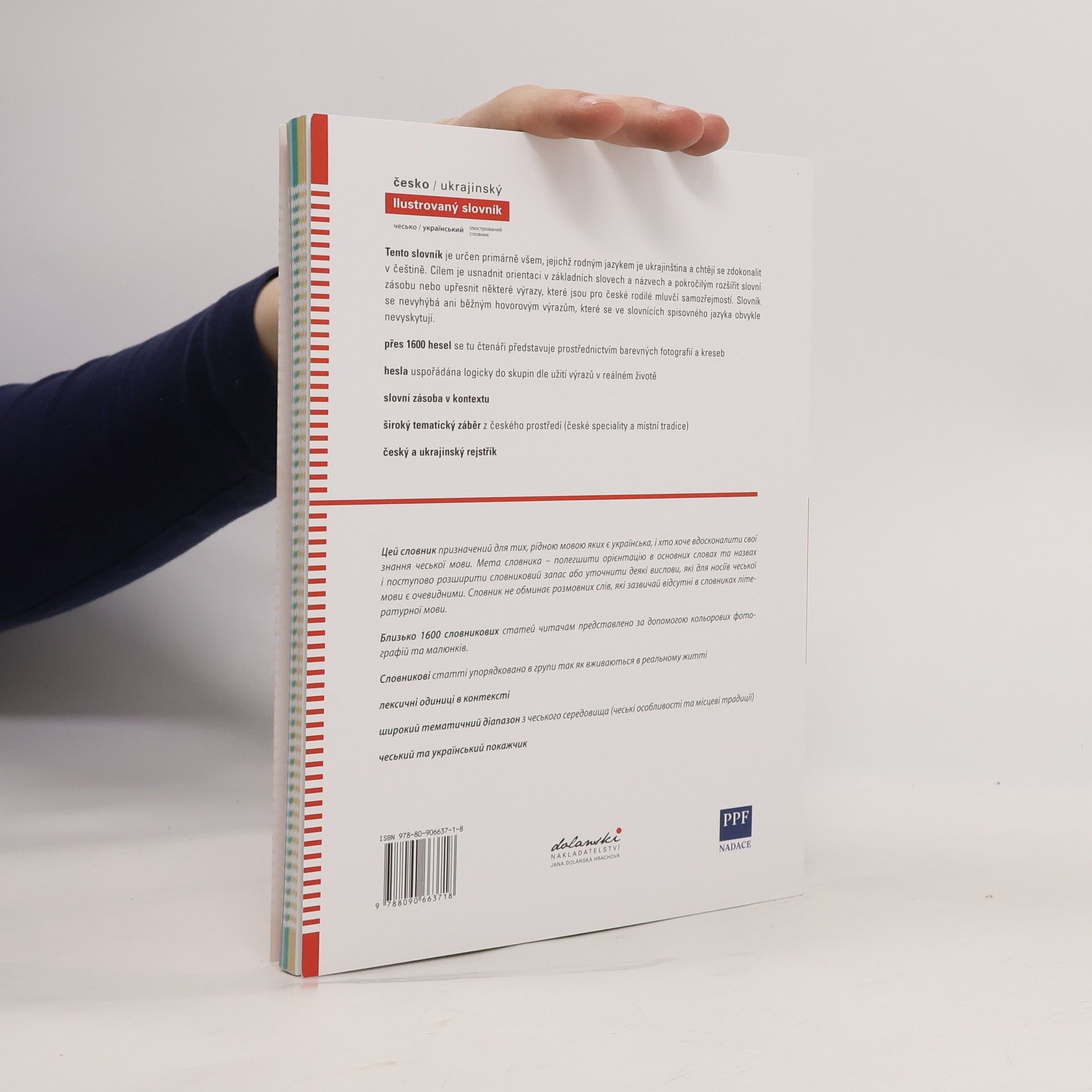 Tento slovník je určen primárně všem, jejichž rodným jazykem je ukrajinština a chtějí se zdokonalit v češtině. Cílem je usnadnit orientaci v základních slovech a názvech a pokročilým rozšířit slovní zásobu nebo upřesnit některé výrazy, které jsou pro české rodilé mluvčí samozřejmostí. Slovník se nevyhýbá ani běžným hovorovým výrazům, které se ve slovnících spisovného jazyka obvykle nevyskytují.Přes 1600 hesel se tu čtenáři představuje prostřednictvím barevných fotografií a kreseb.
