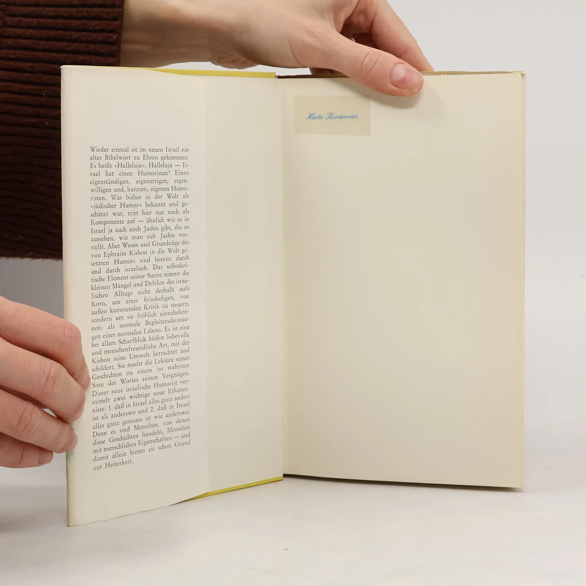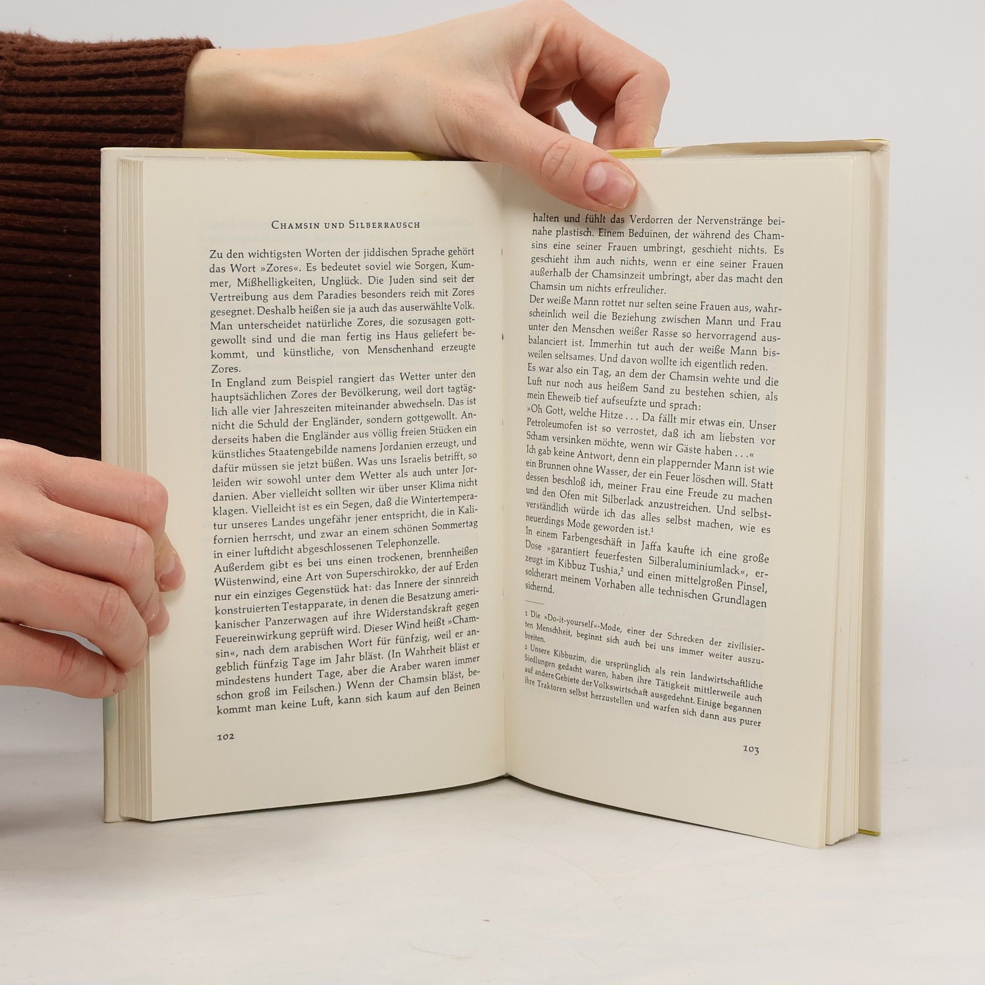 »Das vorliegende Buch ist die erste Sammlung satirischer Kurzgeschichten aus Israel seit zweitausend Jahren«, so bemerkt der Verfasser in der Fußnote auf Seite 76. Und er fährt fort: »Schon aus diesem Grund verdient es ein gewisses Maß an Hochachtung.« Daß dieser Grund gar kein Grund ist, weil in Israel - wie man dazu erfährt - alles »zum erstenmal seit zweitausend Jahren« geschieht, schadet nichts, denn Gründe für die Hochachtung vor Ephraim Kishon und seinen geistvollen Satiren gibt es mehr als genug. Diese Geschichten und Streiflichter von den großen Problemen des kleinen Landes sind überwältigend komisch. Bürokratie, Sprachverwirrung, Völkergemisch, Ver- und Gebote - alles wird grotesk und absurd übertrieben. Dennoch spürt man: nur auf diese Weise kann Kishon seiner liebevollen Besorgnis um sein Land und seinem Stolz auf die bewundernswerte Tatsache Israel Ausdruck geben.