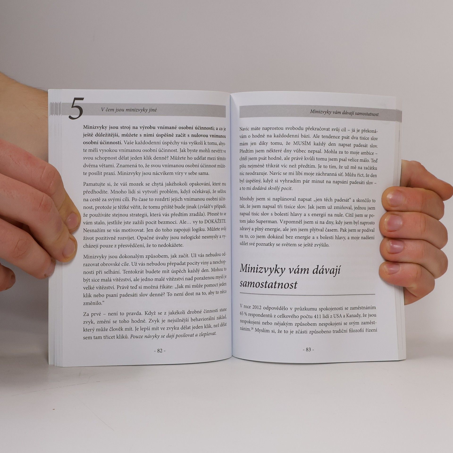 Konečně je tu kniha pro chronické „začínače“! Pro všechny, kdo chtějí pravidelně běhat, cvičit, jezdit na kole či jinak sportovat, ale nedaří se jim tyto činnosti zařadit do života, zhubnout, zdravě jíst nebo se zbavit zlozvyků. Mnozí si myslí, že nemohou dosáhnout trvalých změn, protože selhávají. Problém spočívá v boji proti vlastnímu mozku. Je nutné naučit se hrát podle jeho pravidel a osvojit si techniky, které umožňují dosahovat skvělých výsledků bez pocitu viny a frustrace spojené s tradičními metodami jako „motivujte se“ nebo „prostě to udělejte“. Minizvyk představuje malou pozitivní činnost, kterou se zavážete vykonávat každý den. Tyto minizvyky jsou „příliš malé na to, abyste selhali“, a představují účinnou techniku pro vytváření zdravých návyků. Cílem této knihy je pomoci vám trvale přidávat nové zdravé návyky do života. V prvních třech částech se dozvíte o tvorbě návyků, mozku, síle vůle a motivaci. Další části se zaměřují na logické a vědecké závěry, jak tyto informace efektivně využít, a poslední části vám ukáží, jak to můžete aplikovat sami.