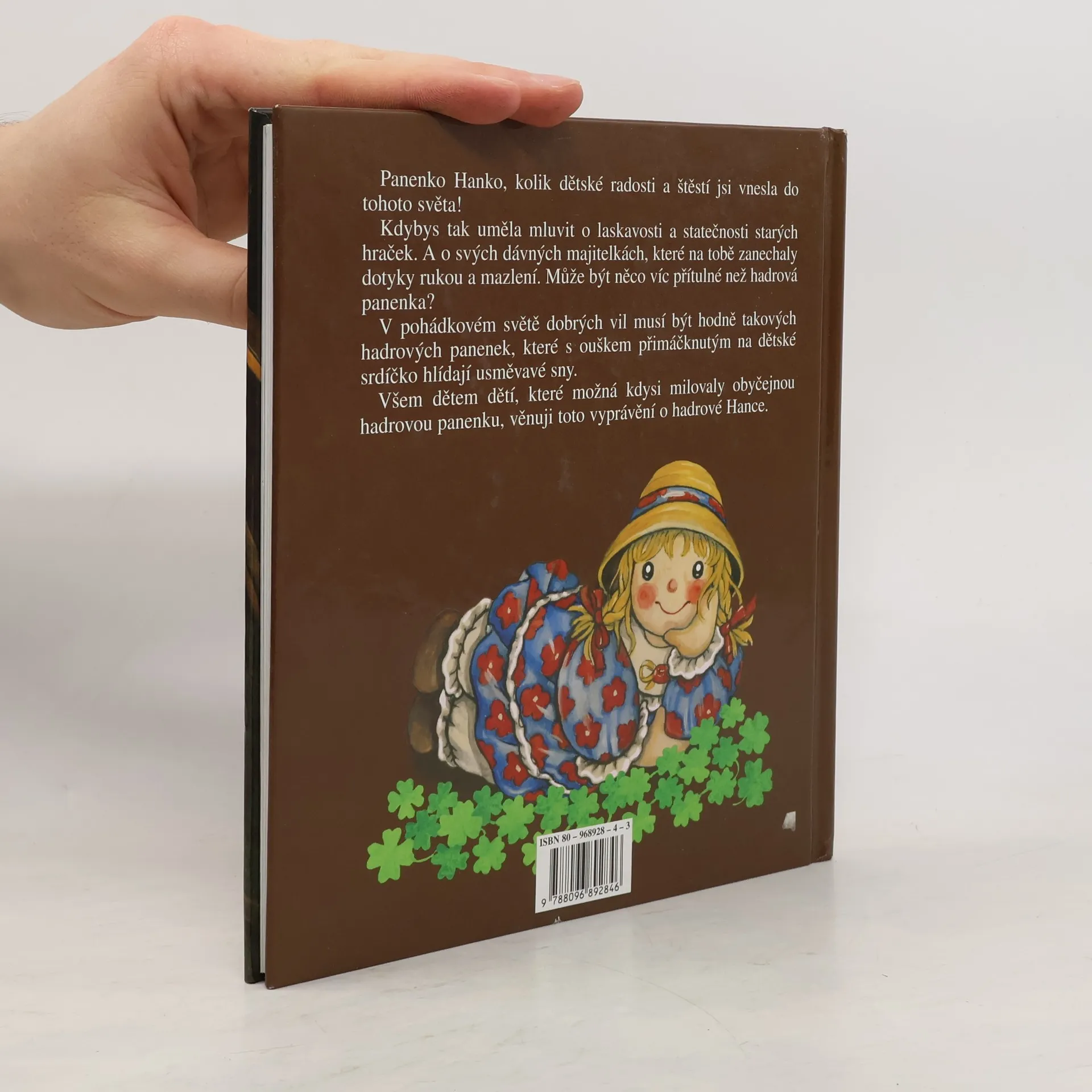 Holčička Vendulka našla na půdě starou hadrovou panenku po babičce a odnesla ji k ostatním hračkám do pokojíčku. Panenka Hanka pak prožívá s ostatními Vendulčinými hračkami mnohá dobrodružství. A3 martincp Pohádkové vyprávění o hadrové panence Hance a jejích dobrodružstvích. Vhodné pro děti od šesti let