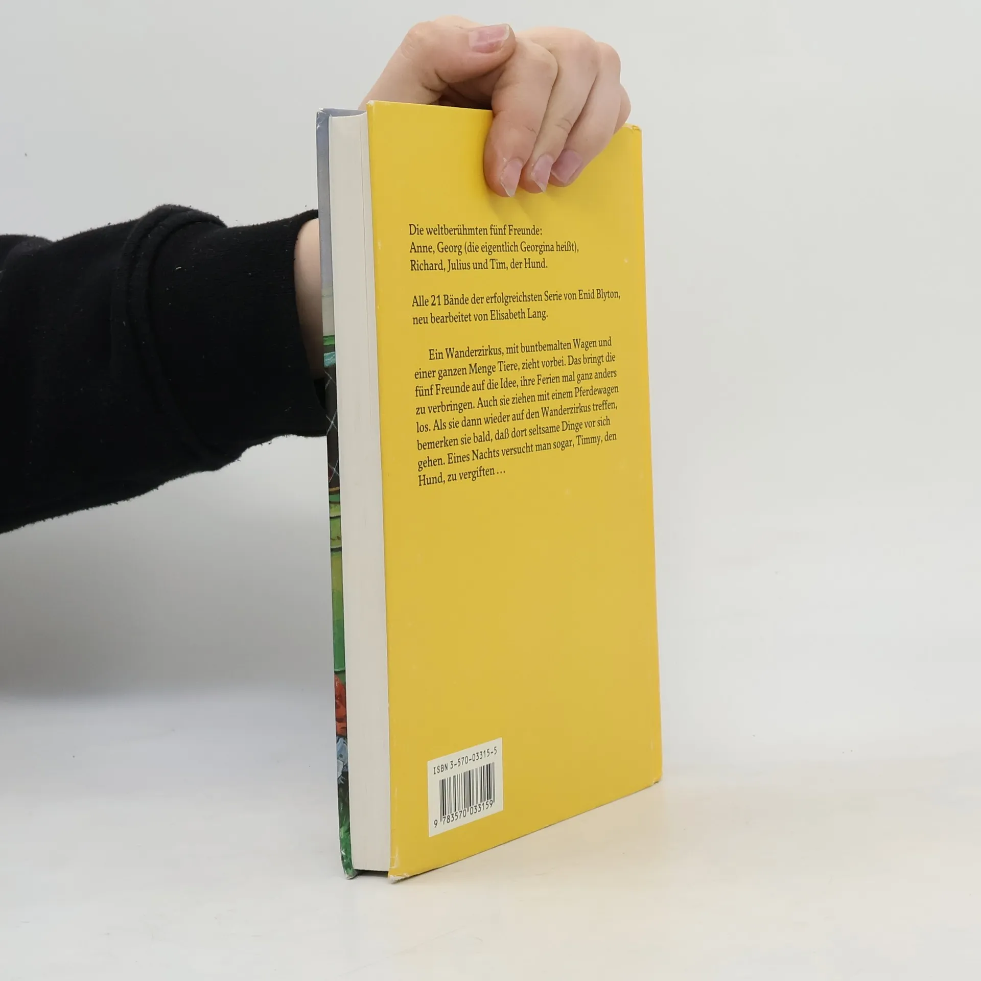 Die weltberühmten fünf Freunde: Anne, Georg (die eigentlich Georgina heißt), Richard, Julius und Tim, der Hund. Alle 21 Bände der erfolgreichsten Serie von Enid Blyton, neu bearbeitet von Elisabeth Lang. Ein Wanderzirkus, mit buntbemalten Wagen und einer ganzen Menge Tiere, zieht vorbei. Das bringt die fünf Freunde auf die Idee, ihre Ferien mal ganz anders zu verbringen. Auch sie ziehen mit einem Pferdewagen los. Als sie dann wieder auf den Wanderzirkus treffen, bemerken sie bald, daß dort seltsame Dinge vor sich gehen. Eines Nachts versucht man sogar, Timmy, den Hund, zu vergiften.