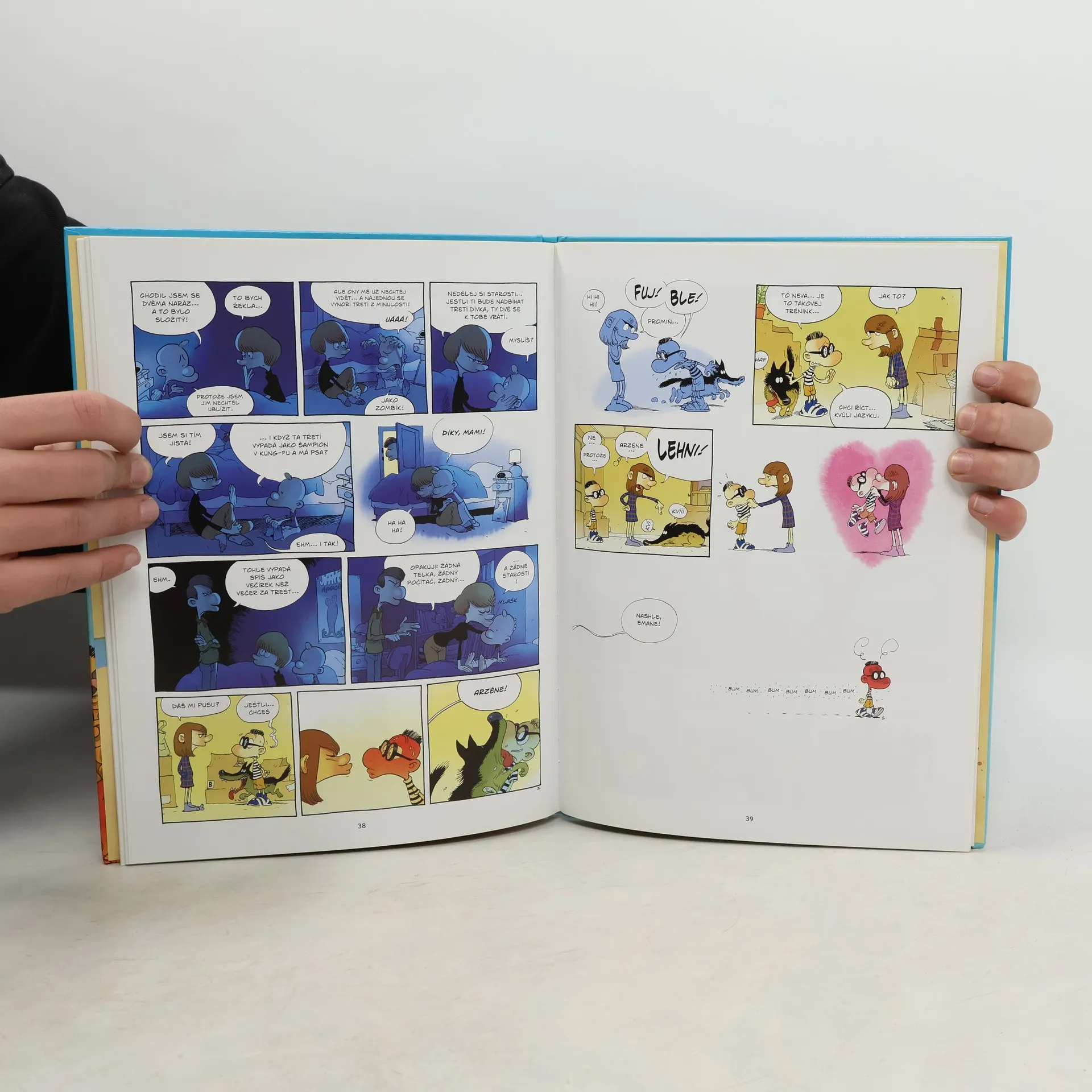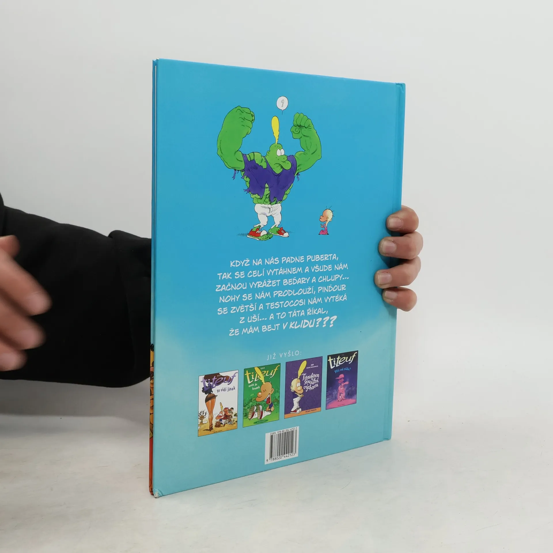 Když na nás padne puberta, tak se celí vytáhnem a všude nám začnou vyrážet beďary a chlupy… Nohy se nám prodlouží, pinďour se zvětší a testocosi nám vytéká z uší… A to táta říkal, že mám bejt v klidu? Titeufovi se život převrátil vzhůru nohama! Zatímco ho dosud holky akorát fackovaly, teď si musí vybrat hned ze dvou nápadnic: Naďa, nebo Ramatu? Z toho by se jeden zcvoknul! Ale co kdyby… měl obě milenky na půlúvazek? Vždyť i Františkův táta má dvě zaměstnání. Jenže takové řešení může napadnout jen kluky. Je na čase trochu vyrůst, posunout se někam dál… do toho zvláštního období puberty, kdy začínáme líbat dívky na ústa. Dokonce i tělo se nám proměňuje… Jenže puberťákem se nestaneme na povel. Jednoho dne do ní prostě padneme až po čupřinu! A nejde to nějak urychlit? Nejsou na to tabletky?