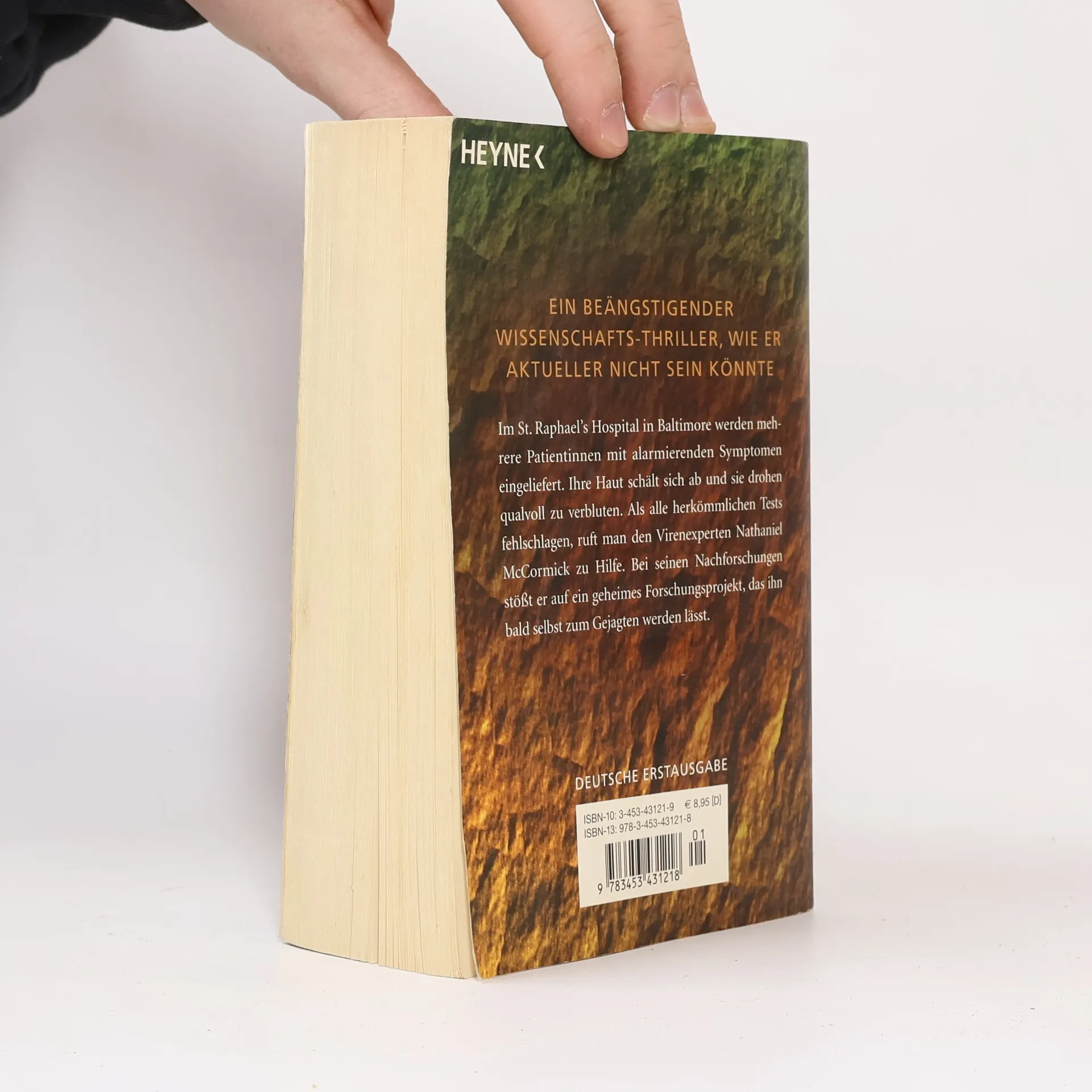 Ein beängstigender Wissenschafts-Thriller, wie er aktueller nicht sein könnte! Im St. Raphael? s Hospital in Baltimore werden mehrere Patientinnen mit alarmierenden Symptomen eingeliefert. Ihre Haut schält sich ab und sie drohen qualvoll zu verbluten. Als alle herkömmlichen Tests fehlschlagen, ruft man den Virenexperten Nathaniel McCormick zu Hilfe. Bei seinen Nachforschungen stößt er auf ein geheimes Forschungsprojekt, das ihn bald selbst zum Gejagten werden lässt.
