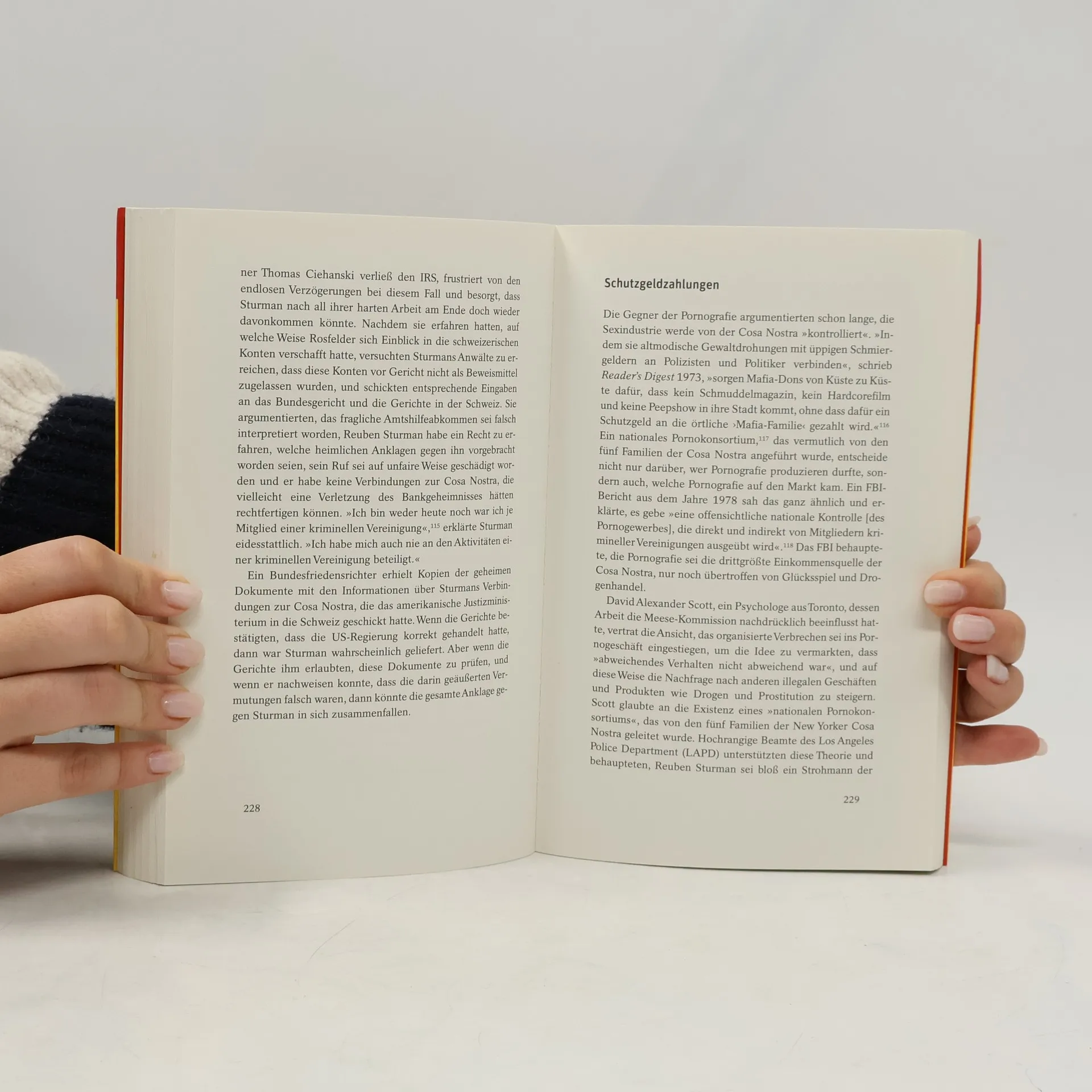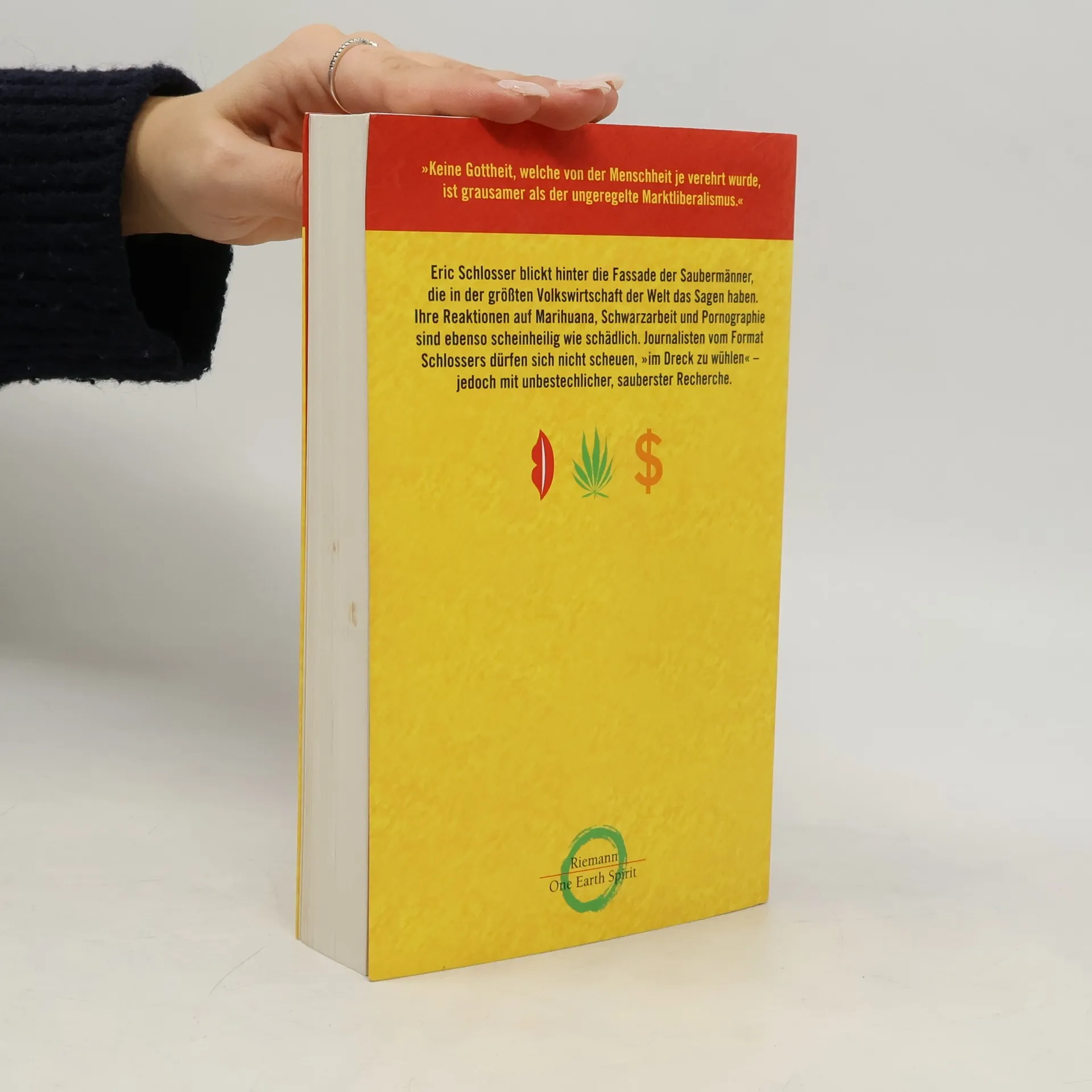 Eric Schlosser untersucht in seinem Werk die dunkle Seite Amerikas, indem er drei boomende Wirtschaftszweige beleuchtet: Drogen, Schwarzarbeit und Prostitution. In der ersten Reportage analysiert er die Auswirkungen der unter Reagan verschärften Drogengesetzgebung, die selbst den Besitz kleinster Mengen Marihuana kriminalisiert. Das Drogengeschäft hat sich zur größten Einnahmequelle der USA entwickelt, an der auch schlecht bezahlte Beamte durch Bestechung und Schmiergelder profitieren. Auf den Erdbeerfeldern lernen wir den Farmer Doug kennen, der gezwungen ist, mit illegalen Einwanderern aus Mexiko zu arbeiten – eine moderne Form der Sklaverei. Schlosser kritisiert den freien Markt und erklärt, dass „keine Gottheit, welche von der Menschheit je verehrt wurde, grausamer ist als der ungeregelte Marktliberalismus.“ Ein weiterer Fokus liegt auf Reuben Sturmann, der ein Imperium in der Pornoindustrie aufgebaut hat. Während er im Normalfall mit Größen wie Henry Ford oder Walt Disney verglichen werden könnte, bleibt sein Geschäft gesellschaftlich tabu. Dennoch erzielen große Unternehmen wie AOL und Time Warner durch die „Obszöne“ hohe Gewinne. Die amerikanische Kultur zeigt ihre Doppelbödigkeit in diesen Bereichen, die staatlich bekämpft werden, aber für viele unverzichtbar sind. Der Glaube an den freien Markt und der amerikanische Puritanismus haben eine Nation hervorgebracht, in der über 10 Prozent der Wirtschaftsleistung im Sc