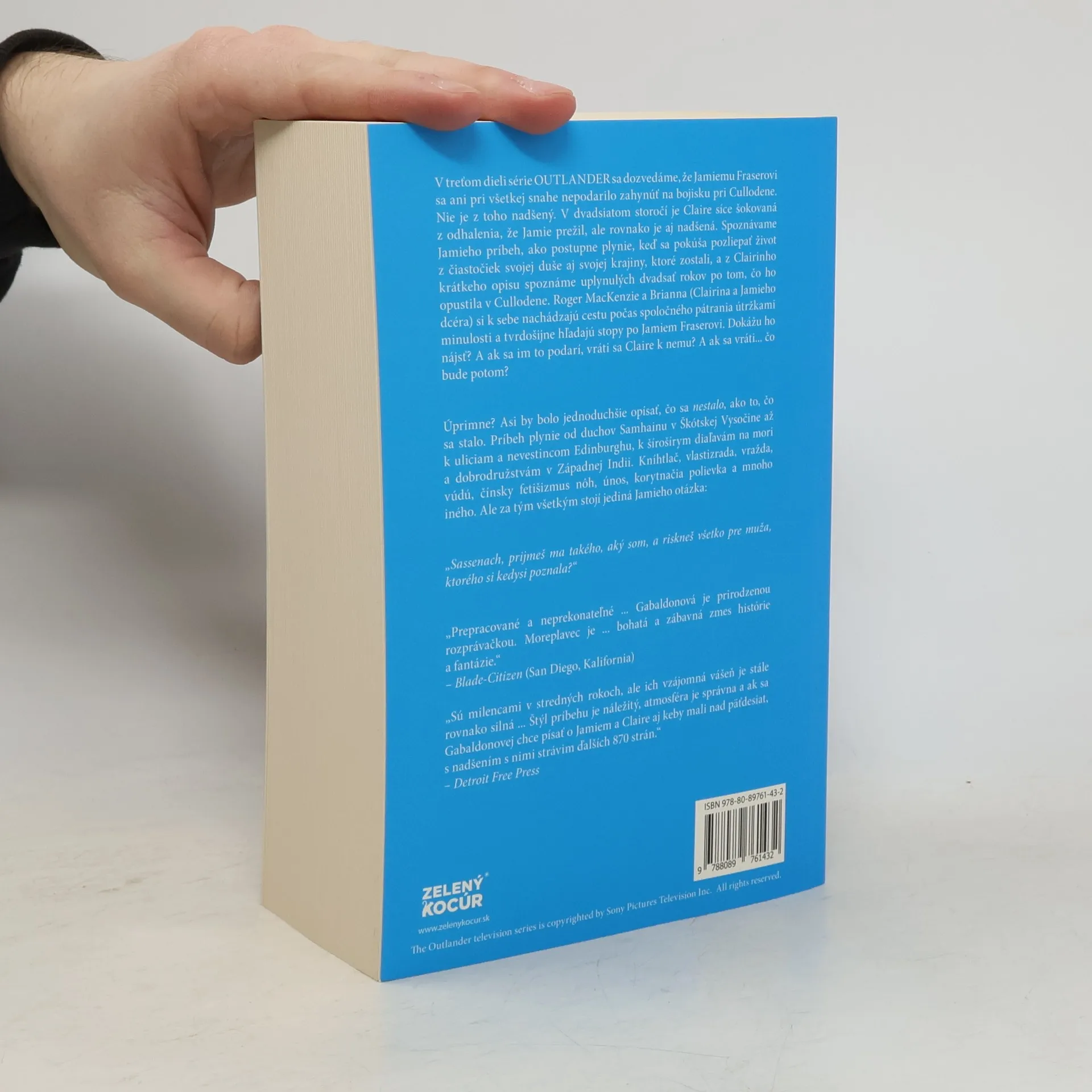 V treťom dieli série OUTLANDER sa dozvedáme, že Jamiemu Fraserovi sa ani pri všetkej snahe nepodarilo zahynúť na bojisku pri Cullodene. Nie je z toho nadšený. V dvadsiatom storočí je Claire síce šokovaná z odhalenia, že Jamie prežil, ale rovnako je aj nadšená. Spoznávame Jamieho príbeh, ako postupne plynie, keď sa pokúša pozliepať život z čiastočiek svojej duše aj svojej krajiny, ktoré zostali, a z Clairinho krátkeho opisu spoznáme uplynulých dvadsať rokov po tom, čo ho opustila v Cullodene. Roger MacKenzie a Brianna (Clairina a Jamieho dcéra) si k sebe nachádzajú cestu počas spoločného pátrania útržkami minulosti a tvrdošijne hľadajú stopy po Jamiem Fraserovi. Dokážu ho nájsť? A ak sa im to podarí, vráti sa Claire k nemu? A ak sa vráti... čo bude potom? Úprimne? Asi by bolo jednoduchšie opísať, čo sa nestalo, ako to, čo sa stalo. Príbeh plynie od duchov Samhainu v Škótskej Vysočine až k uliciam a nevestincom Edinburghu, k šírošírym diaľavám na mori a dobrodružstvám v Západnej Indii. Kníhtlač, vlastizrada, vražda, vúdú, čínsky fetišizmus nôh, únos, korytnačia polievka a mnoho iného. Ale za tým všetkým stojí jediná Jamieho otázka: „Sassenach, prijmeš ma takého, aký som, a riskneš všetko pre muža, ktorého si kedysi poznala?“