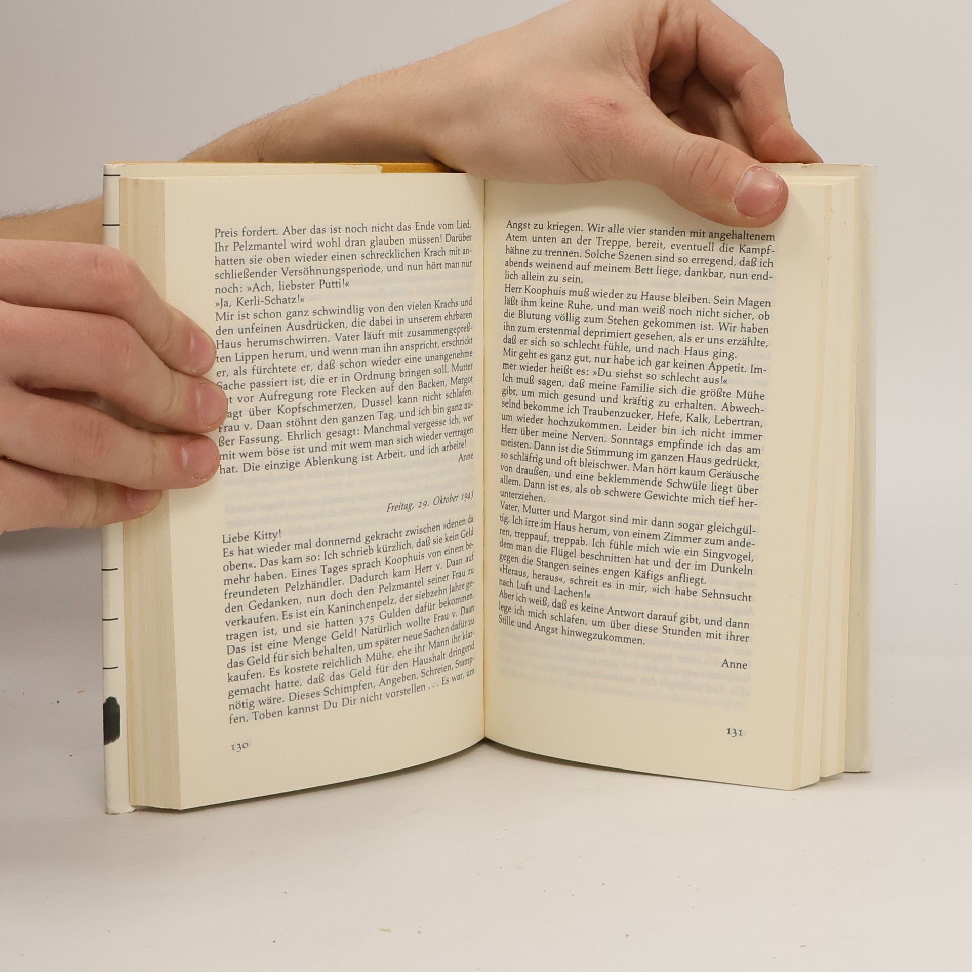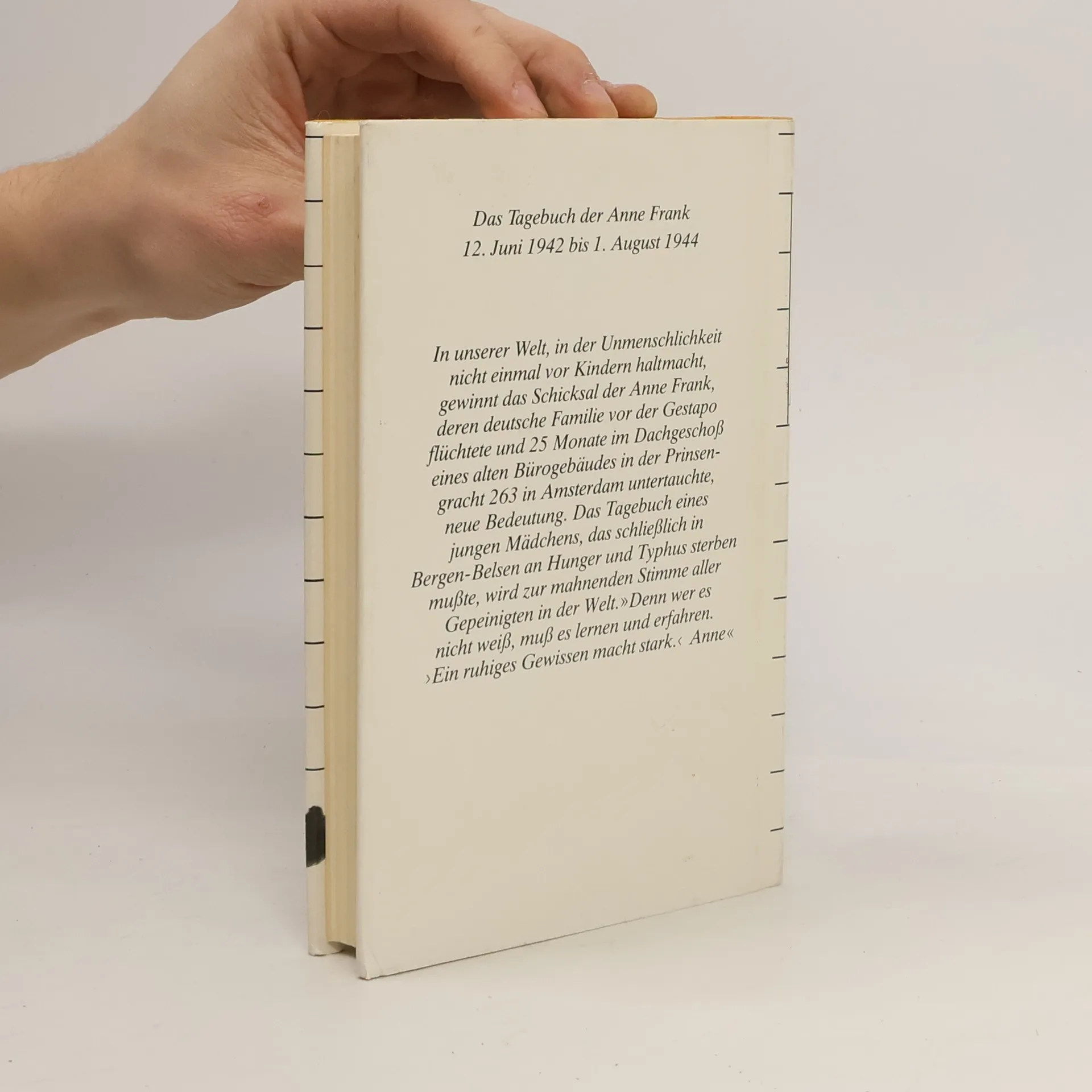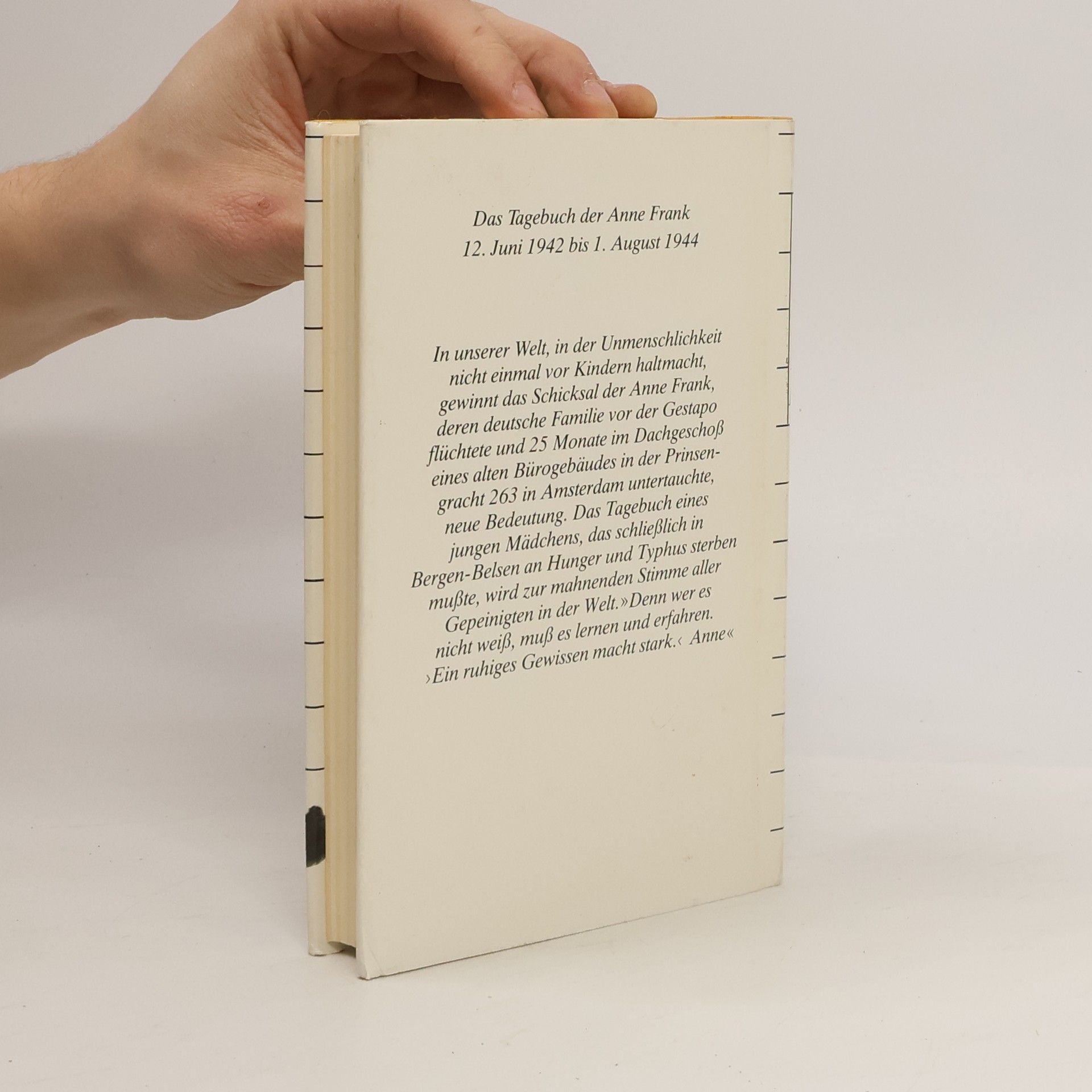 Die weltweit gültige und verbindliche Fassung des Tagebuchs von Anne Frank, autorisiert vom Anne Frank Fonds Basel, vereint Symbolik und Dokumentation. Es steht für den Völkermord an den Juden durch die Nazis und dokumentiert das Leben einer talentierten jungen Schriftstellerin. Diese Ausgabe ist die einzige autorisierte Fassung, die Annes überarbeitete Texte enthält, ohne die von ihrem Vater Otto Frank vorgenommenen Auslassungen. Mirjam Pressler hat eine neue, dem Stil des Originals entsprechende Übersetzung erarbeitet. Der vollständige Text vermittelt ein eindrucksvolles Bild von Annes Gefühls- und Gedankenwelt sowie ihren Fortschritten als Schriftstellerin. Anne Frank fragte sich: „Werde ich jemals Journalistin und Schriftstellerin werden? Ich hoffe es, ich hoffe es so sehr!“ Anne hinterließ zwei fragmentarische Tagebuchversionen: Version a ist der ursprüngliche Text, während Version b ihre unvollendete Bearbeitung darstellt, die 1986 veröffentlicht wurde. Version c war die erste Fassung, die Otto Frank 1947 veröffentlichte, wobei er sensible Stellen entfernte. Diese Version ist seit 1990 nicht mehr erhältlich. Version d, die vom Anne Frank Fonds autorisierte Leseausgabe, vereint die ungekürzten Texte der Versionen a und b und ist seit 1991 die verbindliche Grundlage für Übersetzungen in über 80 Sprachen. Alle Versionen, außer Version c, sind in verschiedenen Ausgaben von Mirjam Pressler im S. Fischer Verlag erhältlich.