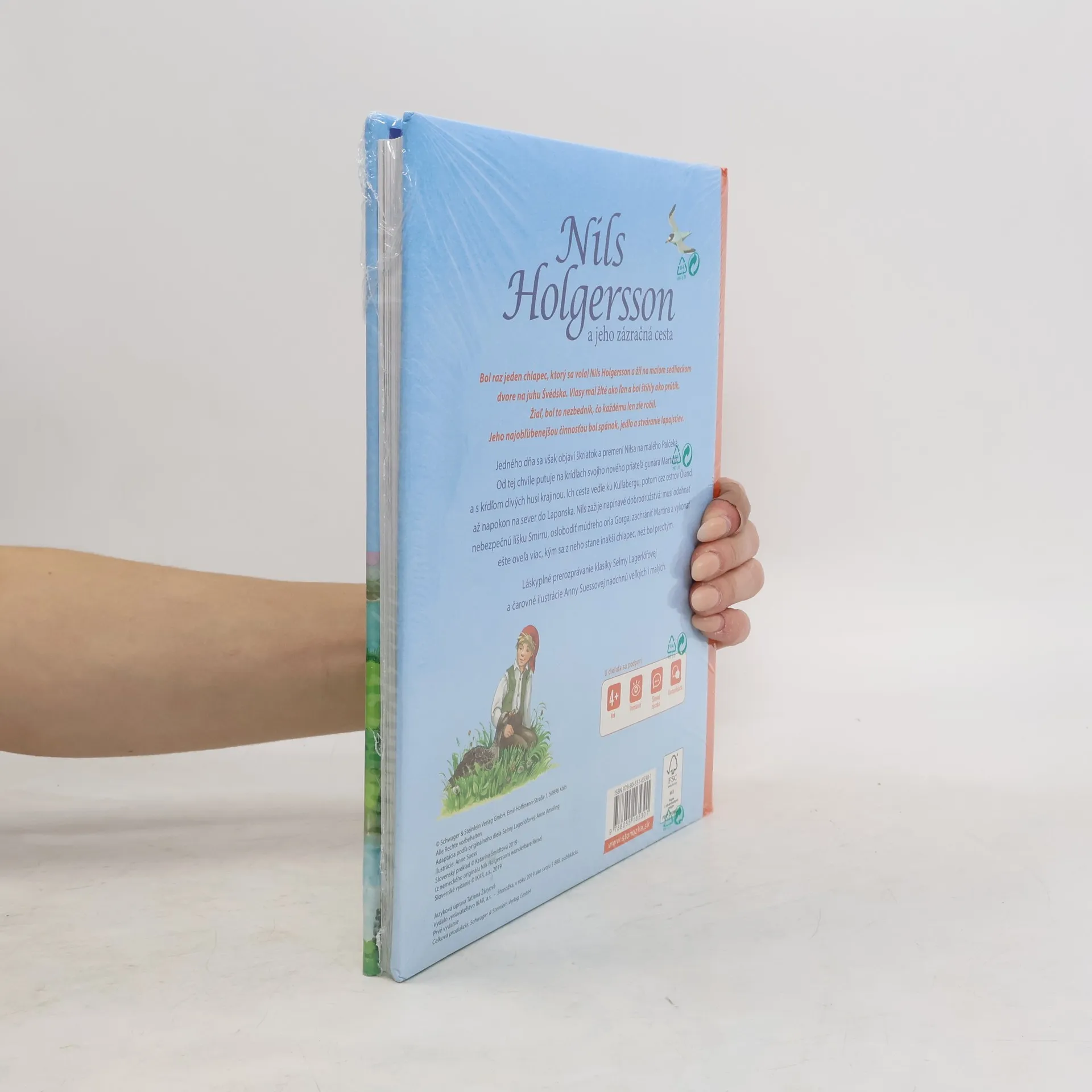 Bol raz jeden chlapec, ktorý sa volal Nils Holgersson a žil na malom sedliackom dvore na juhu Švédska. Vlasy mal žlté ako ľan a bol štíhly ako prútik. Žiaľ, bol to nezbedník, čo každému len zle robil. Jeho najobľúbenejšou činnosťou bol spánok, jedlo a stváranie lapajstiev. Jedného dňa sa však objaví škriatok a premení Nilsa na malého Palčeka. Od tej chvíle putuje na krídlach svojho nového priateľa gunára Martina a s kŕdľom divých husí krajinou. Ich cesta vedie ku Kullabergu, potom cez ostrov Öland, až napokon na sever do Laponska. Nils zažije napínavé dobrodružstvá: musí odohnať nebezpečnú líšku Smirru, oslobodiť múdreho orla Gorga, zachrániť Martina a vykonať ešte oveľa viac, kým sa z neho stane inakší chlapec, než bol predtým. Láskyplné prerozprávanie klasiky Selmy Lagerlöfovej a čarovné ilustrácie Anny Suessovej nadchnú veľkých i malých. Pre deti od 4 rokov.