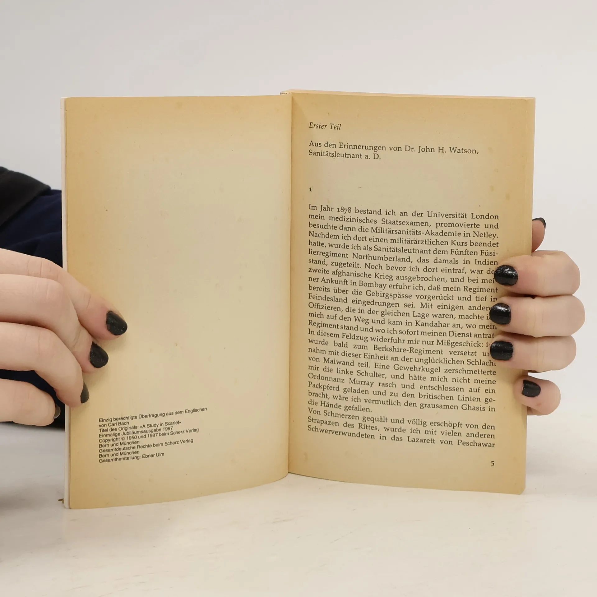 Im Jahr 1881 ziehen Watson und Holmes in eine gemeinsame Wohnung in der Baker Street. Ihre Freundschaft beginnt, als sie einen mysteriösen Todesfall in Lauriston Gardens untersuchen. Ein unvollständiges Wort "Rach" und ein Ehering führen Holmes zu spannenden Theorien über den Mord an Drebber.