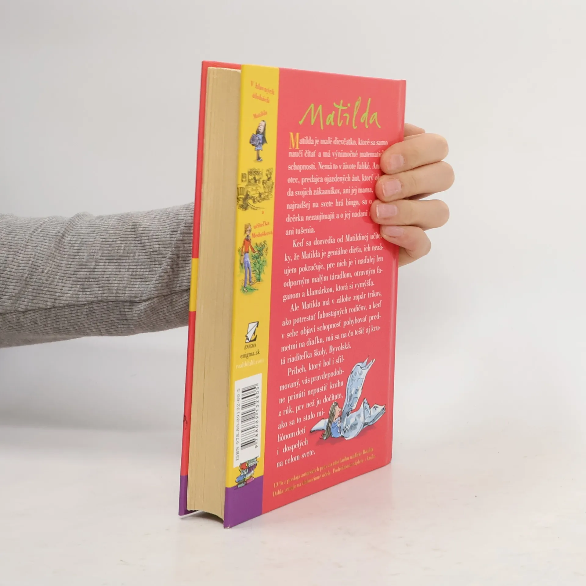 Príbeh malého, výnimočne nadaného dievčatka, ktoré v sebe objaví schopnosť pohybovať predmetmi na diaľku Vás pravdepodobne prinúti - ako sa to stalo miliónom detí, ale i dospelých na celom svete - nepustiť knihu z rúk prv než ju dočítate. Vďaka deju plnému napätia, originálnych nápadov a svojrázneho, niekedy až čierneho humoru sa kniha stala ihneď po prvom vydaní v roku 1988 bestsellerom. K úspechu knihy prispievajú aj nenapodobiteľné ilustrácie jedného z najrenomovanejších britských ilustrátorov, Quentina Blaka, dlhoročného spolupracovníka R. Dahla. S potešením predkladáme túto knihu slovenským deťom, ale aj všetkým dospelým, ktorí si chcú v zhone všedného dňa pripomenúť zázračno detskej duše.