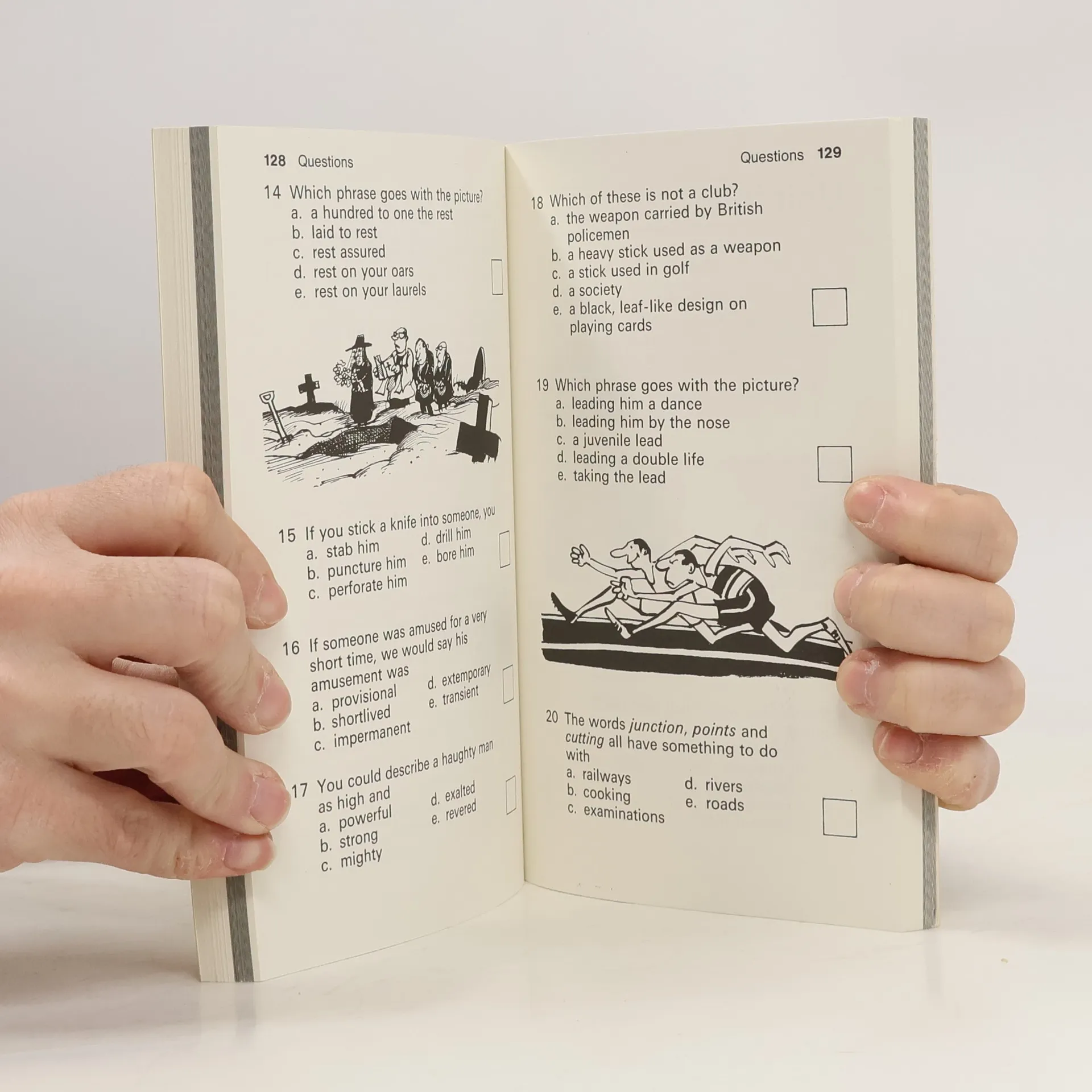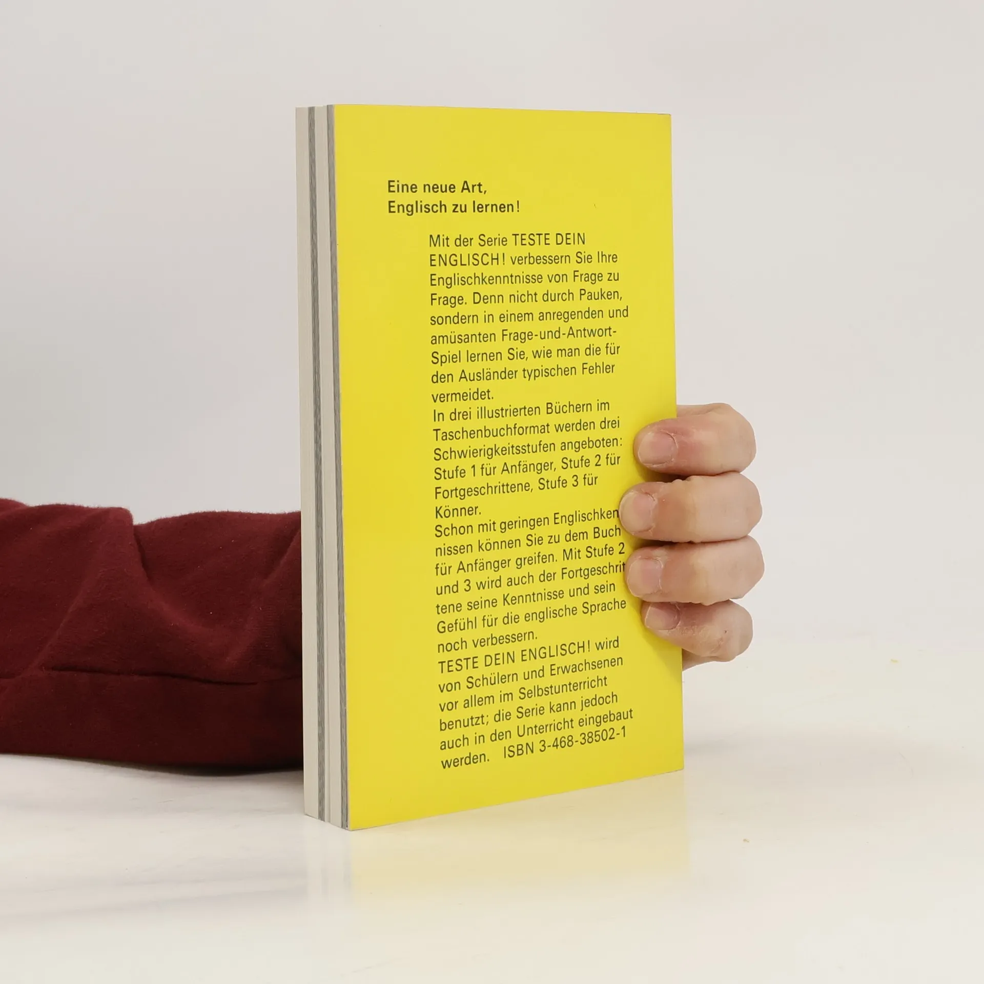 For the person whose primary language is German, this book is filled with questions, in English, with multiple choice answers on best English sentence structure, word choice, and/or most common phrases or idioms in given scenarios or circumstances.